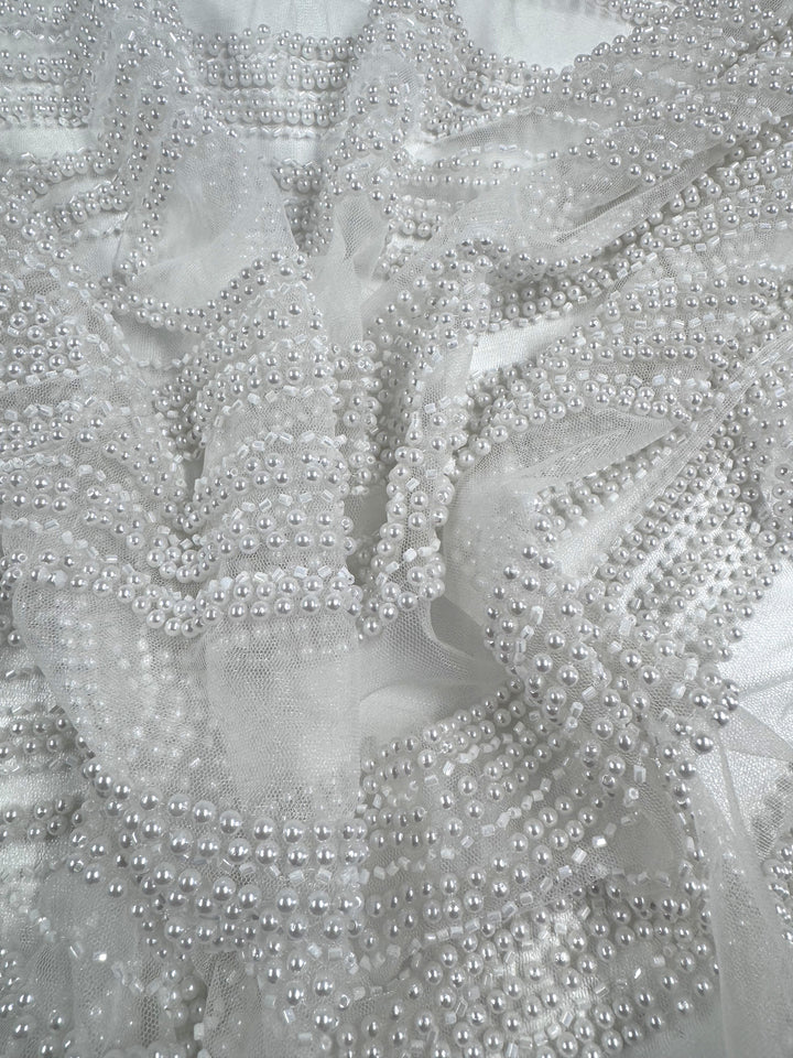 Beaded Lace fabrics are versatile and widely used in various applications. They are commonly found in bridal wear, clothing, home décor, accessories, costumes, bridal veils and lingerie. Lace adds elegance, femininity, and a touch of romance to any item it adorns, making it a popular choice for formal wear, bridal wear and special occasions.
