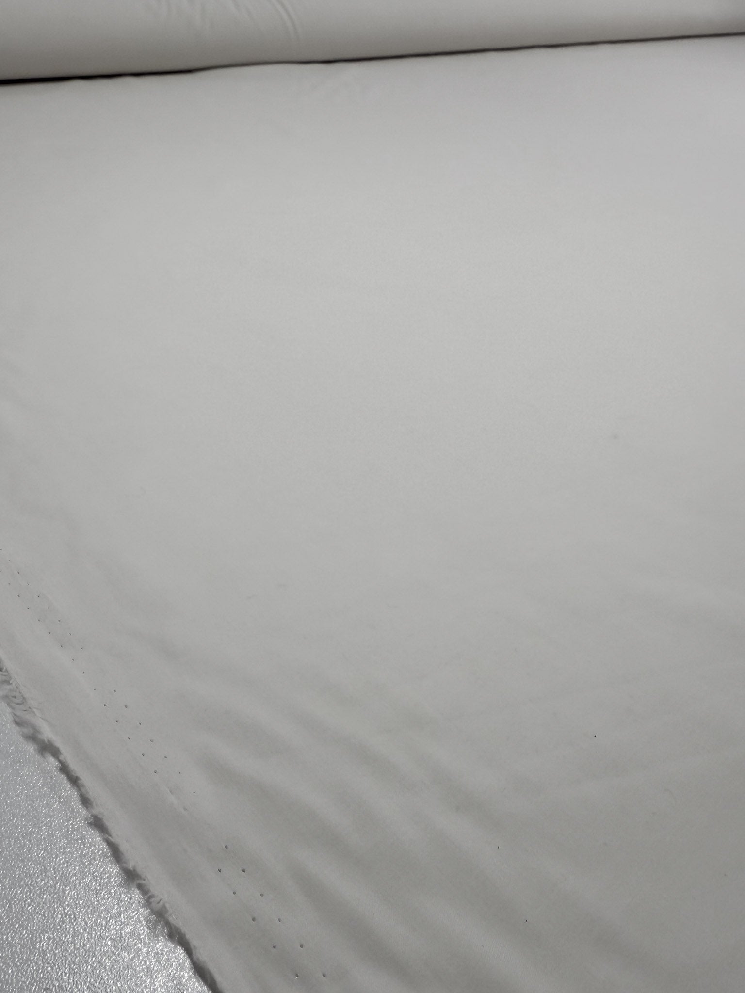 A close-up of Super Cheap Fabrics' Cotton Voile - Gardenia (150cm), neatly folded on a white surface, highlights its smooth texture and sharp edges.