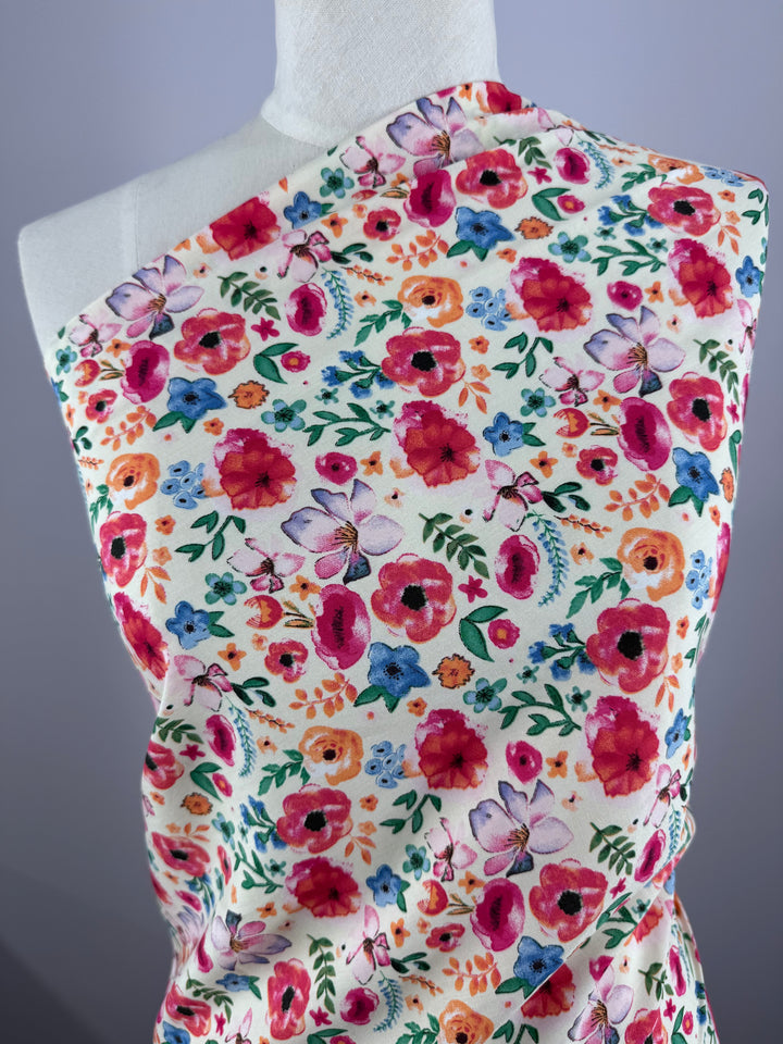 Our Designer Rayon showcases a beautiful and colourful fabric with vibrant prints that can be used for various purposes such as dresses, skirts, blouses, curtains, and more. Our collection showcases a soft, lightweight fabric with a smooth drape and a luxurious feel. Overall, rayon fabric offers both comfort and style, making it a versatile choice for any project. Midnight Tropic showcases an expressive leaf pattern in shades of cobalt, amber, and ivory layered over a rich navy base.