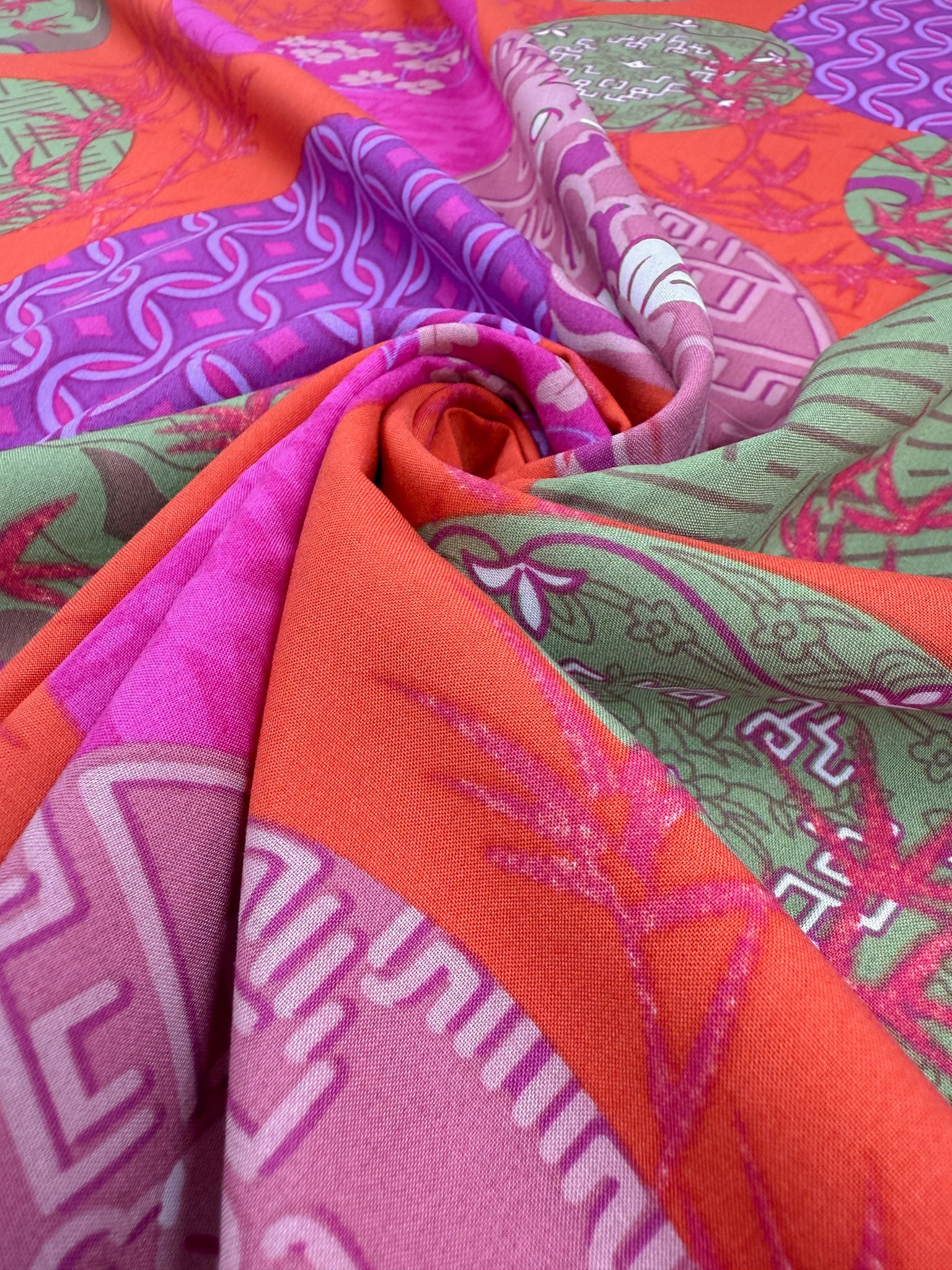 Our Designer Rayon showcases a beautiful and colourful fabric with vibrant prints that can be used for various purposes such as dresses, skirts, blouses, curtains, and more. Overall, rayon fabric offers both comfort and style, making it a versatile choice for any project.