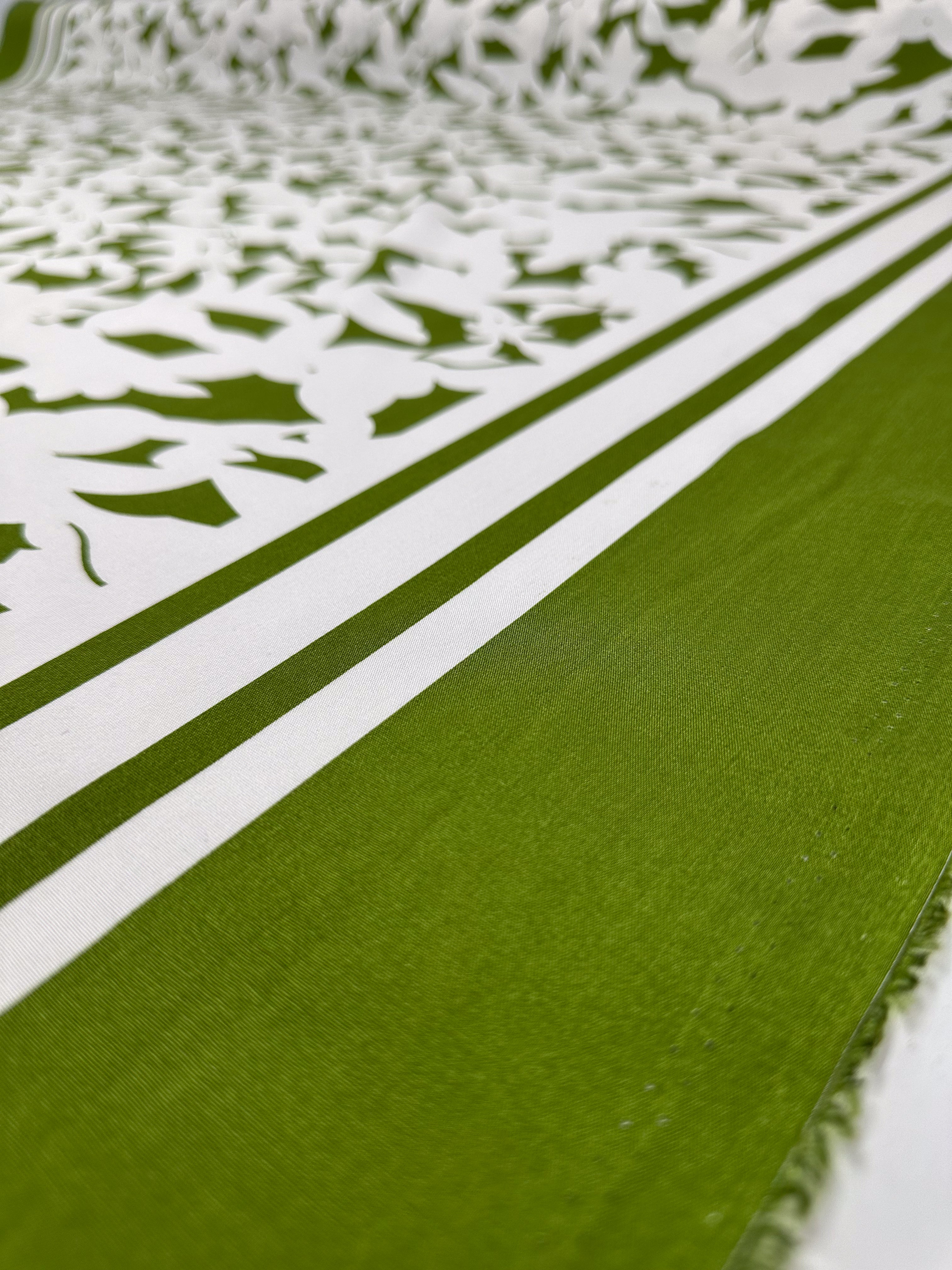 Olive Fade - Clean, graphic border floral with crisp white on earthy green.