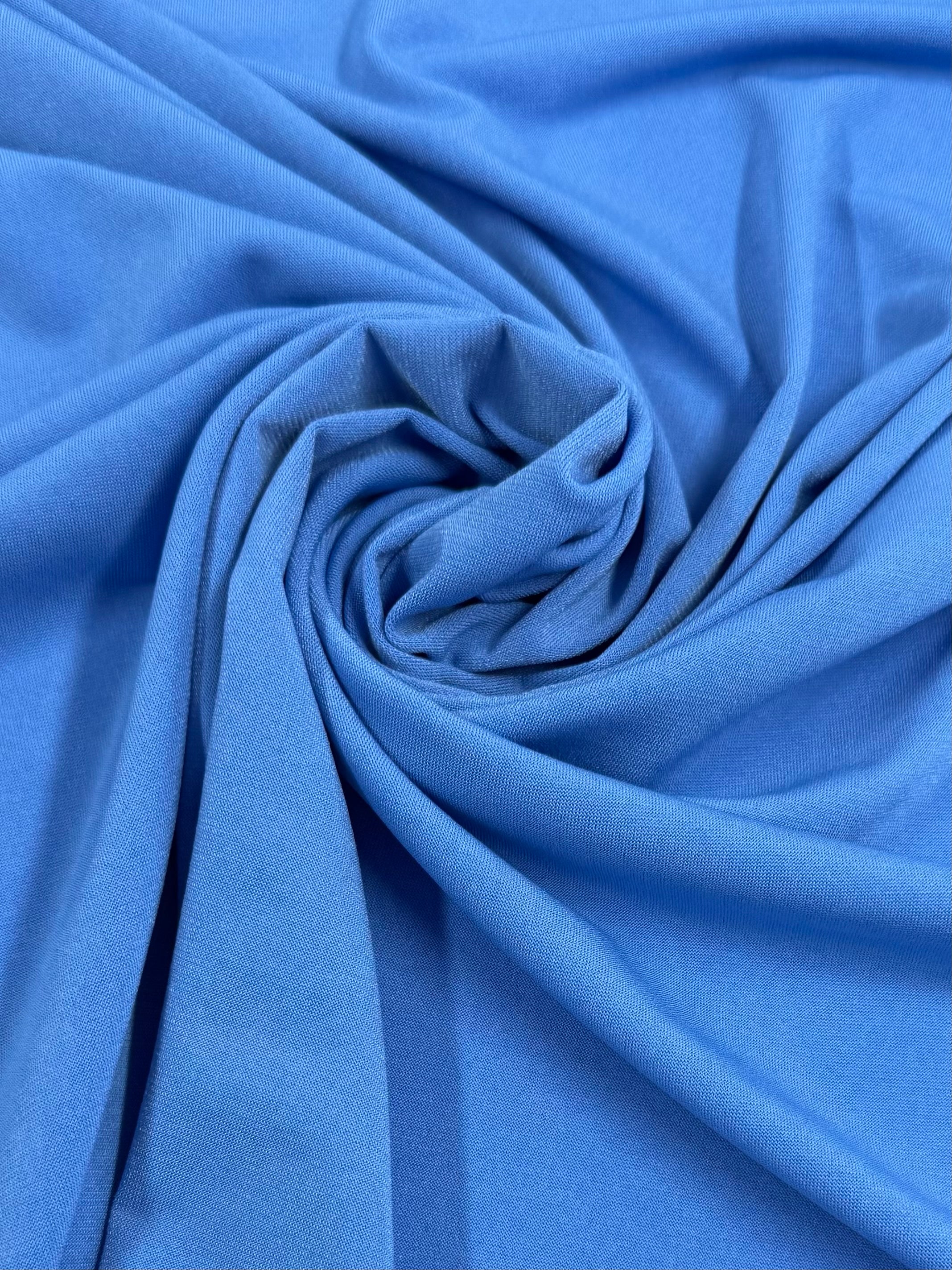 Interlock twist yarn fabric. This opaque fabric has been knit to have great elasticity and a soft touch. This medium weight fabric is the perfect weight for tops, dresses skirts and loose pants.