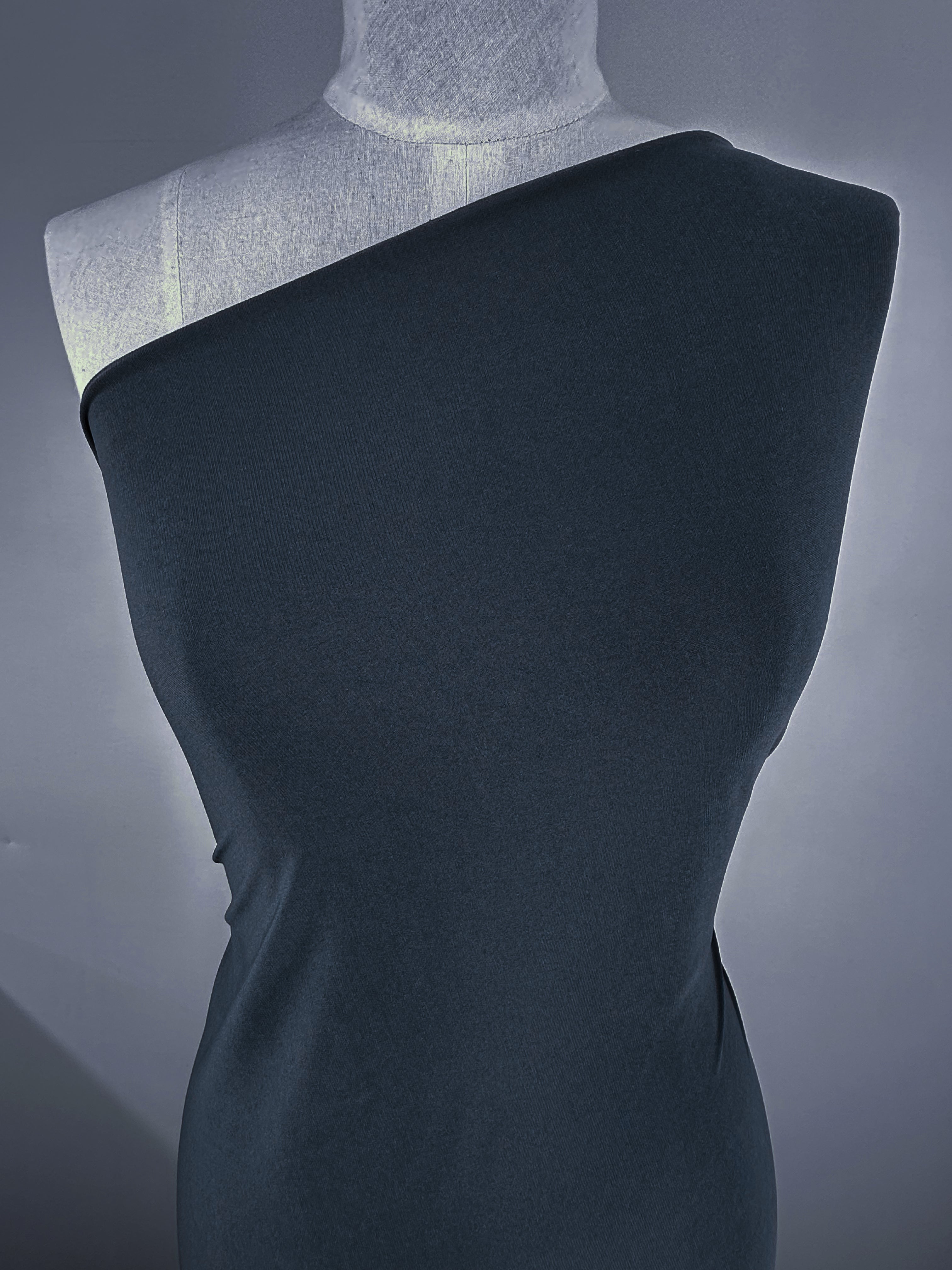 Interlock twist yarn fabric. This opaque fabric has been knit to have great elasticity and a soft touch. This medium weight fabric is the perfect weight for tops, dresses skirts and loose pants.