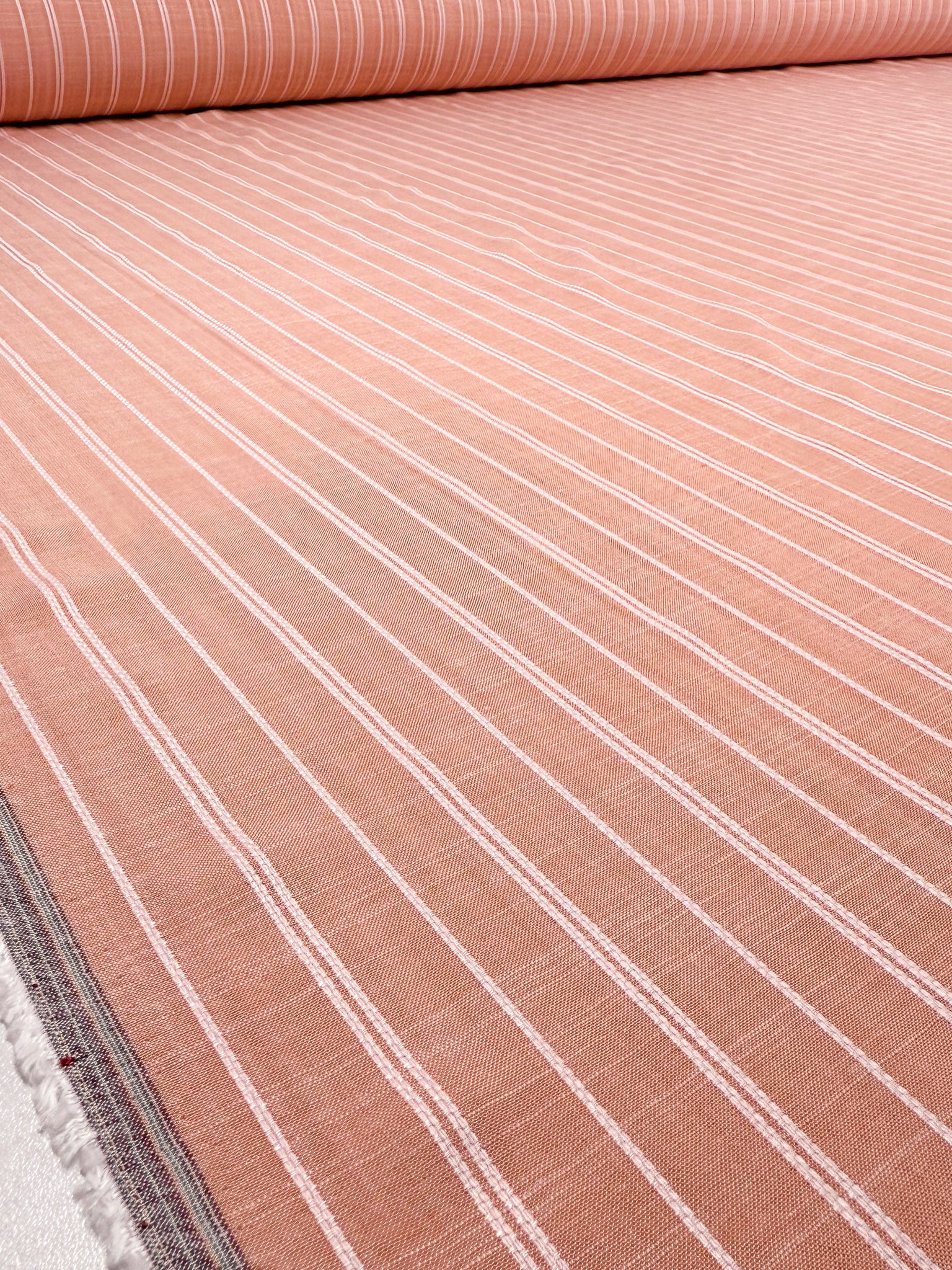 Linen Blend - Dusty Blush Ticking - 142cm
