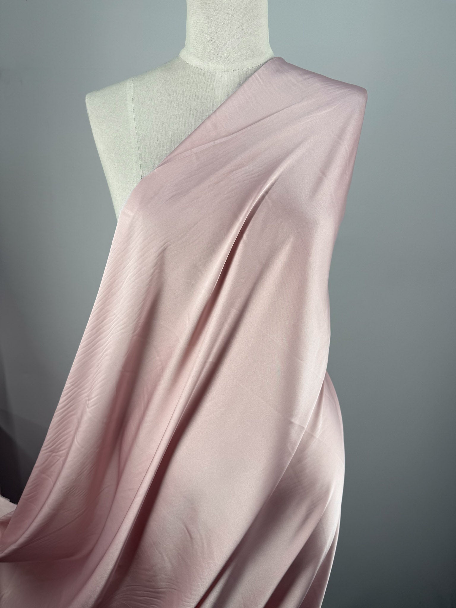 A matte, luxury fabric often used for nightgowns. Satin refers to the weave, not the textile, and most fabrics characterised as satin have a soft, shiny yet matte finish. No spandex however this satin has some give.