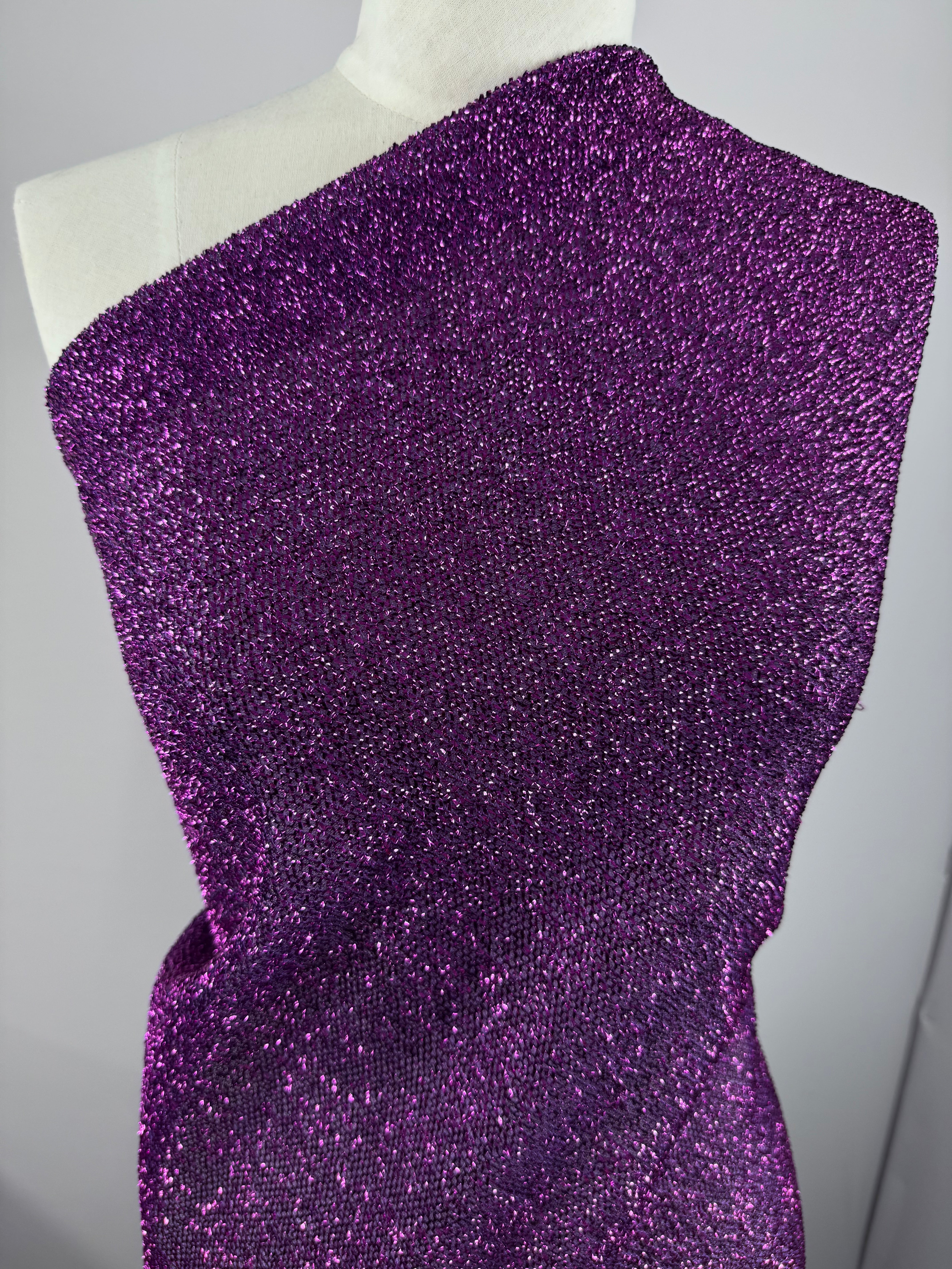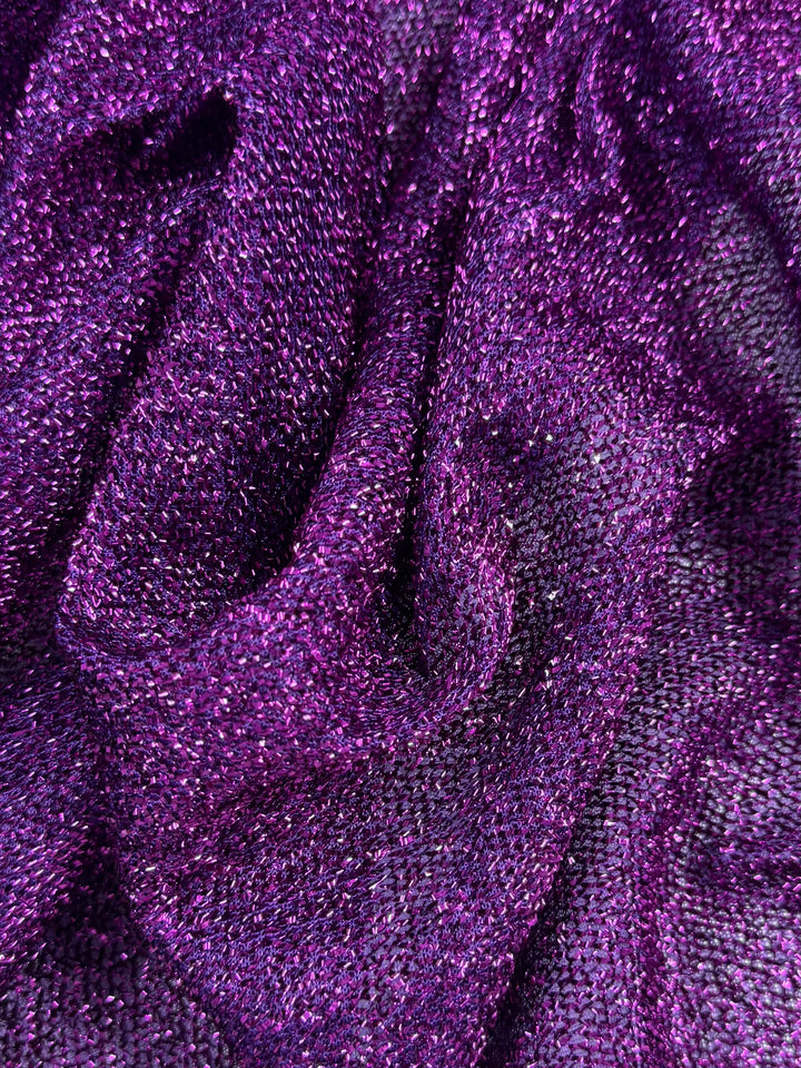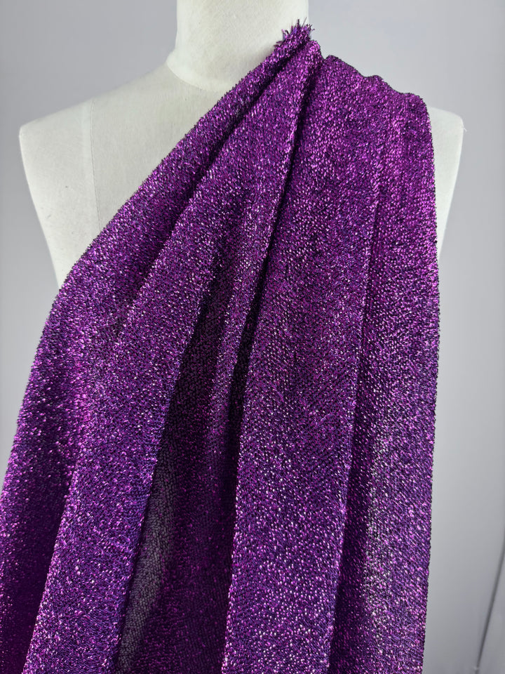A soft, flexible Lurex Stretch Knit designed with a subtle shimmer and a comfortable stretch. This fabric drapes beautifully, offering a smooth feel with added elasticity that makes it easy to sew and flattering to wear. The knitted structure provides breathability while the metallic thread adds a touch of refinement, making it ideal for both casual and elevated looks. Versatile, durable, and perfect for garments or creative projects that need movement and a hint of shine.
