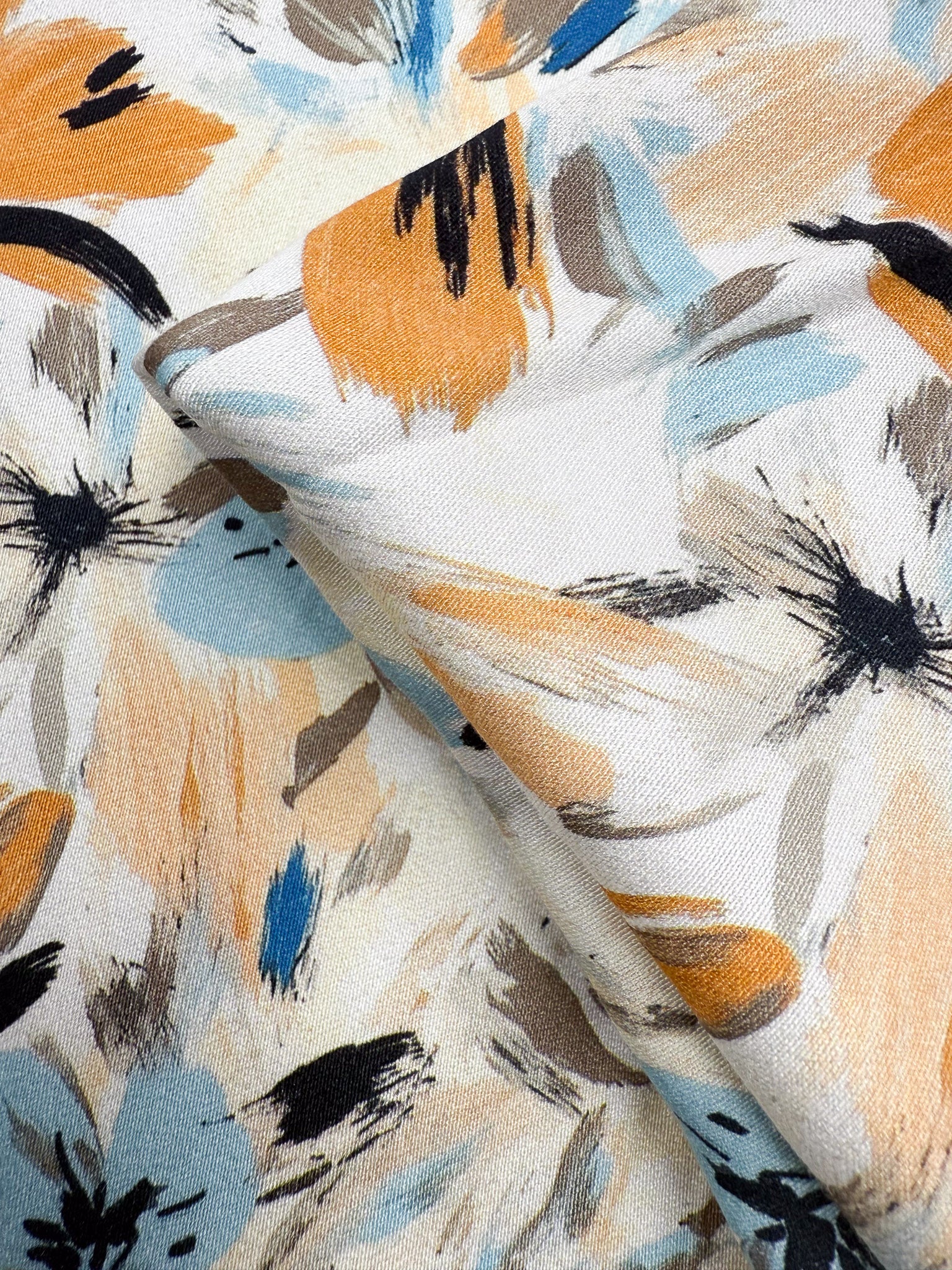 Our Mercerised Rayon offers a silky soft hand feel with a beautiful fluid drape, making it the ideal fabric for light weight garments. The mercerisation process enhances the rayon’s strength, lustre and print clarity, delivering rich colour, defined edges, and a subtle sheen. Naturally breathable and comfortable to wear, this fabric moves effortlessly with the body, perfect for dresses, blouses, skirts and resort-style pieces. Whether it’s bold geometrics, florals or abstract motifs, every print pops on this elevated base.
