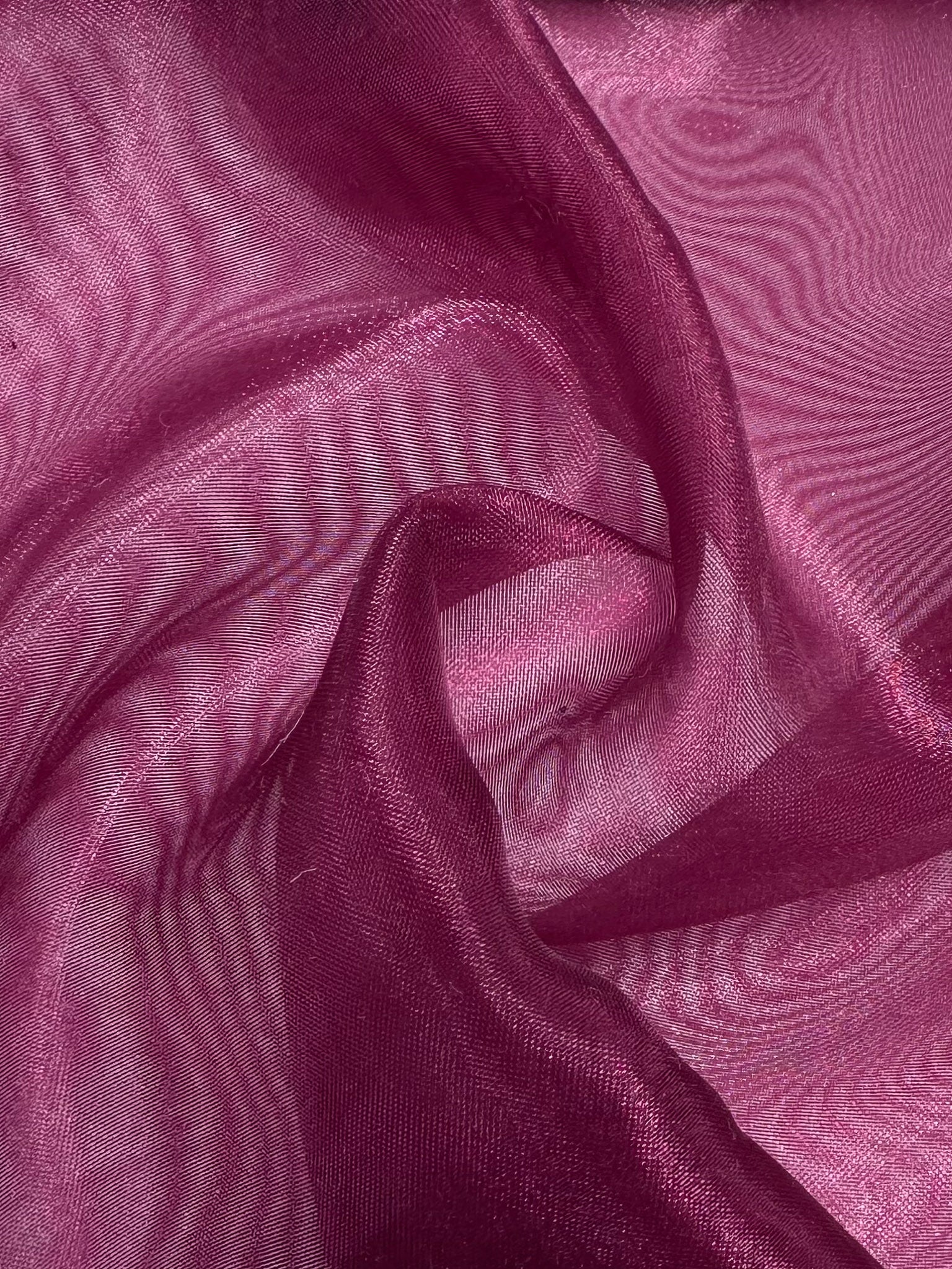 A light weight, sheer organza fabric. This fabric has a beautiful sheen and can be layered to create fullness and deeper colour. This light weight fabric is the perfect weight for tops, dresses and costumes.