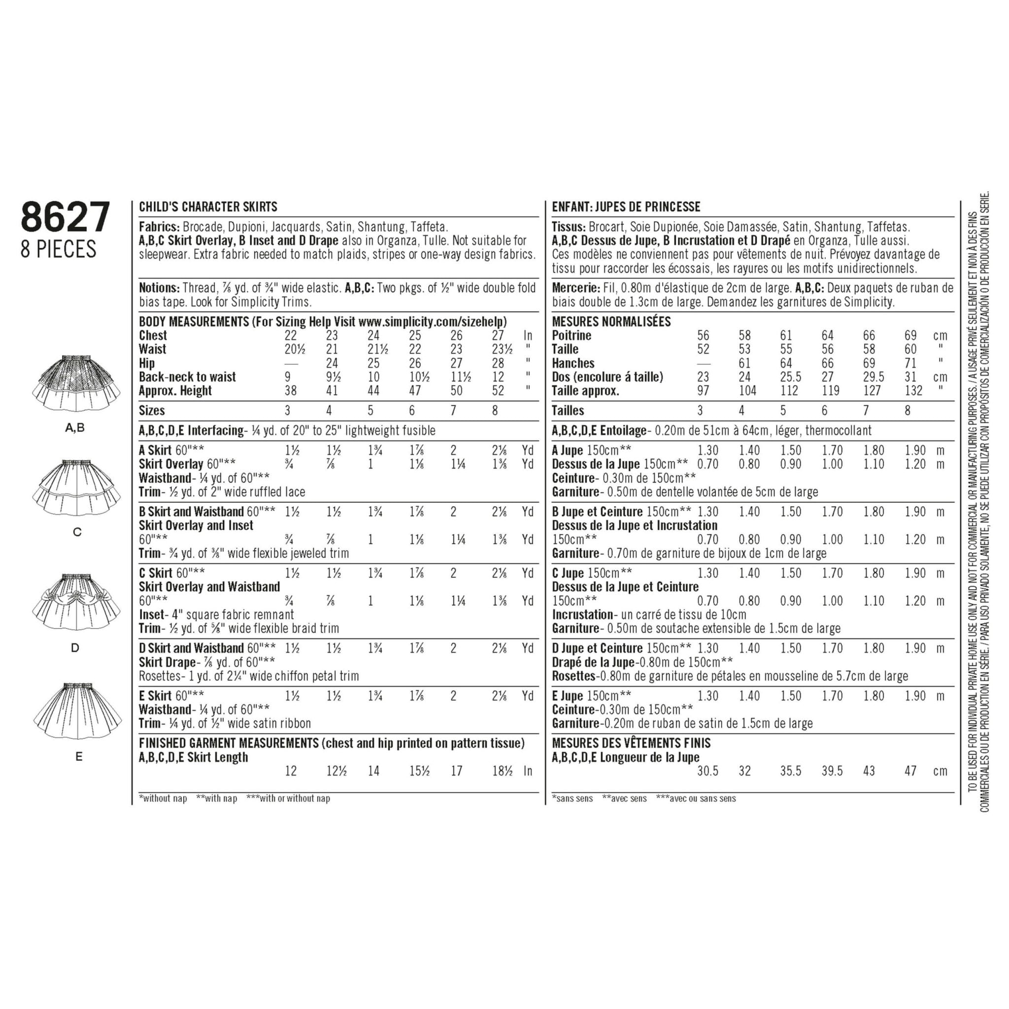Pattern - Simplicity - S8627 - Disney Character Princess Skirts