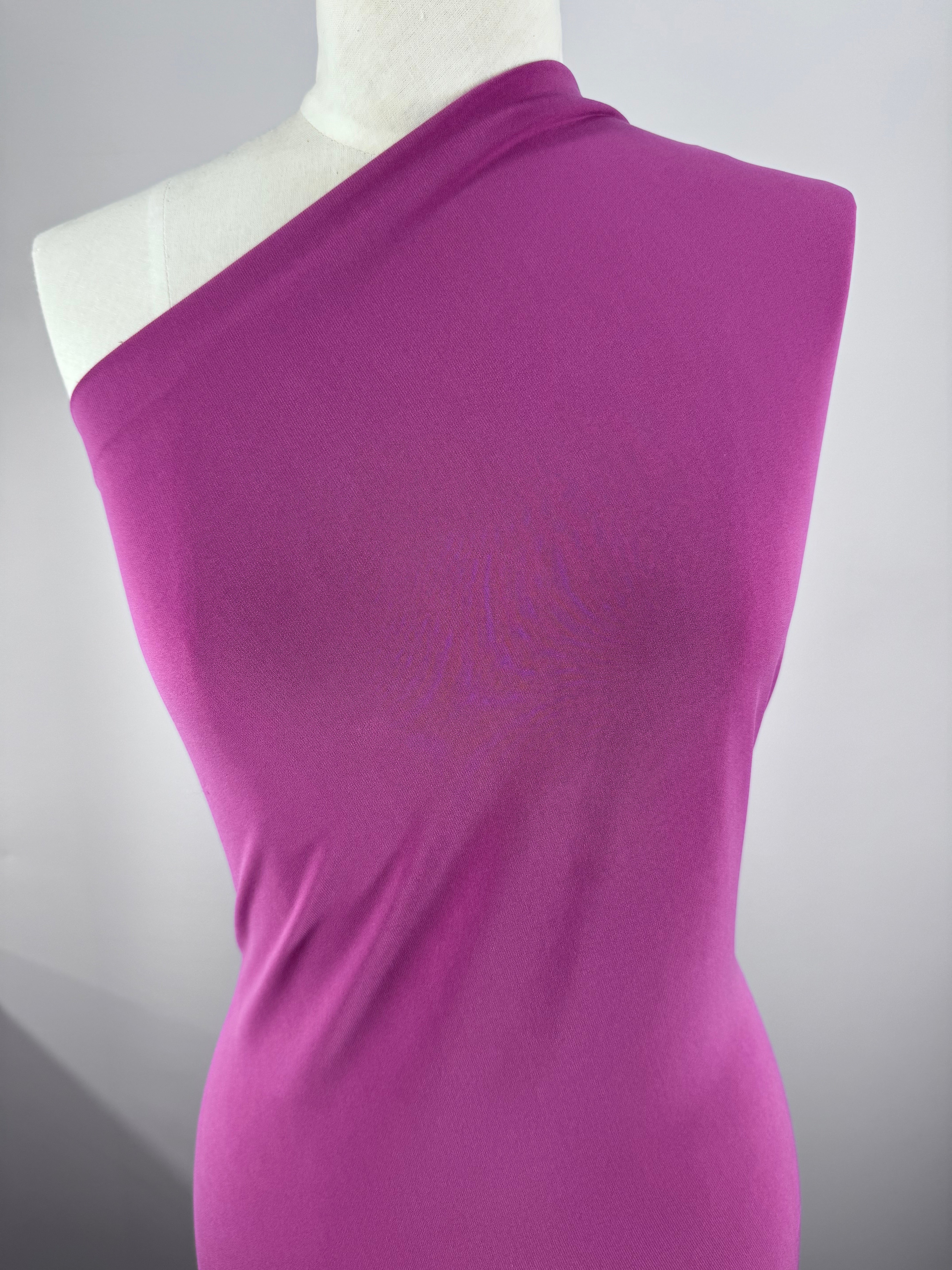 A beautiful plain, Rose Sorbet coloured interlock twist yarn fabric. This opaque fabric has been knit to have great elasticity and a soft touch. This medium weight fabric is the perfect weight for tops, dresses skirts and loose pants.
