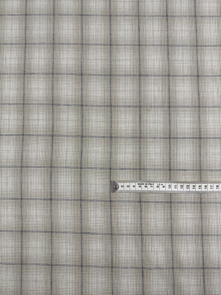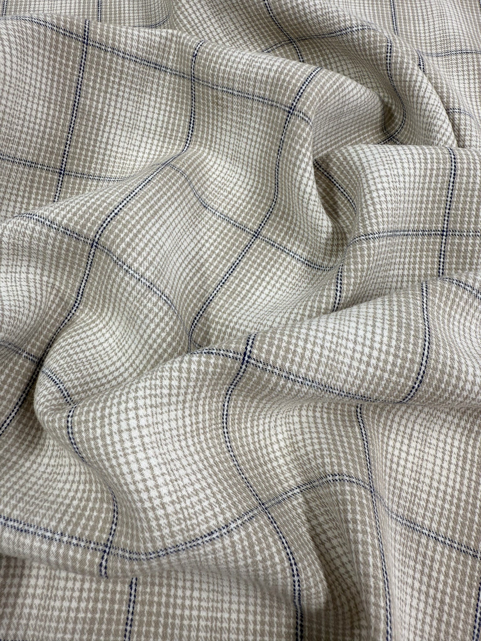 A peyote, white and navy pure linen overcheck tweed.