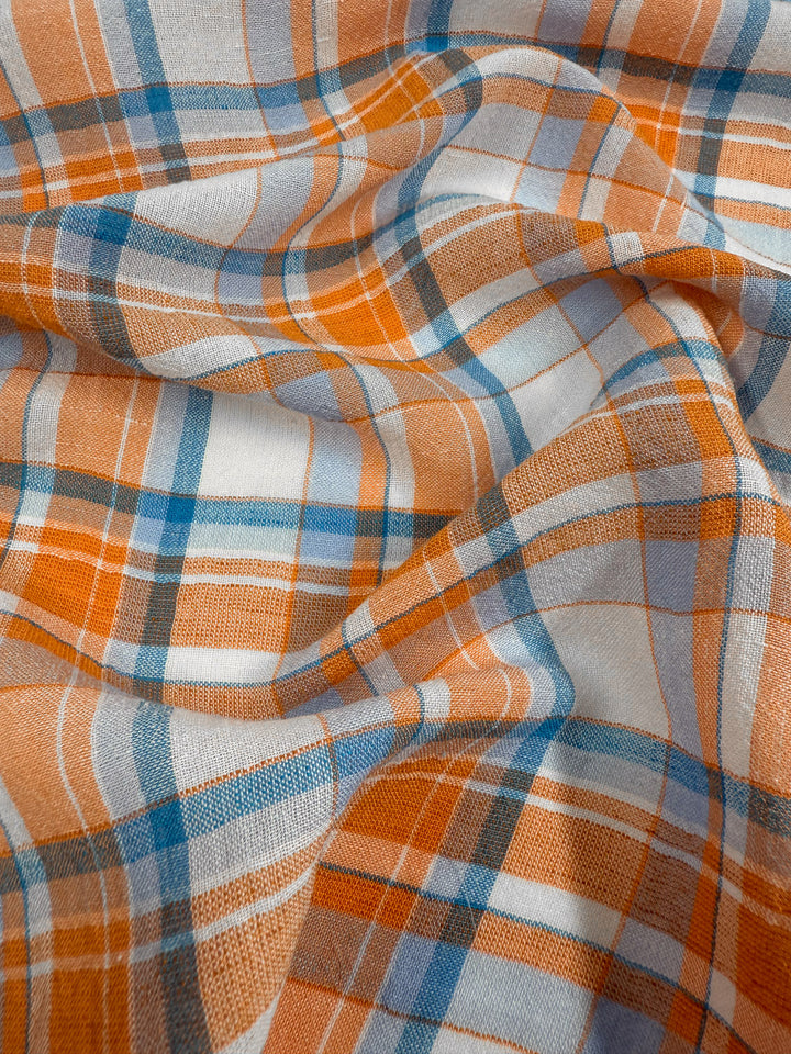 Playful clash of warm and cool hues. A bold, fresh, and summery pure linen.