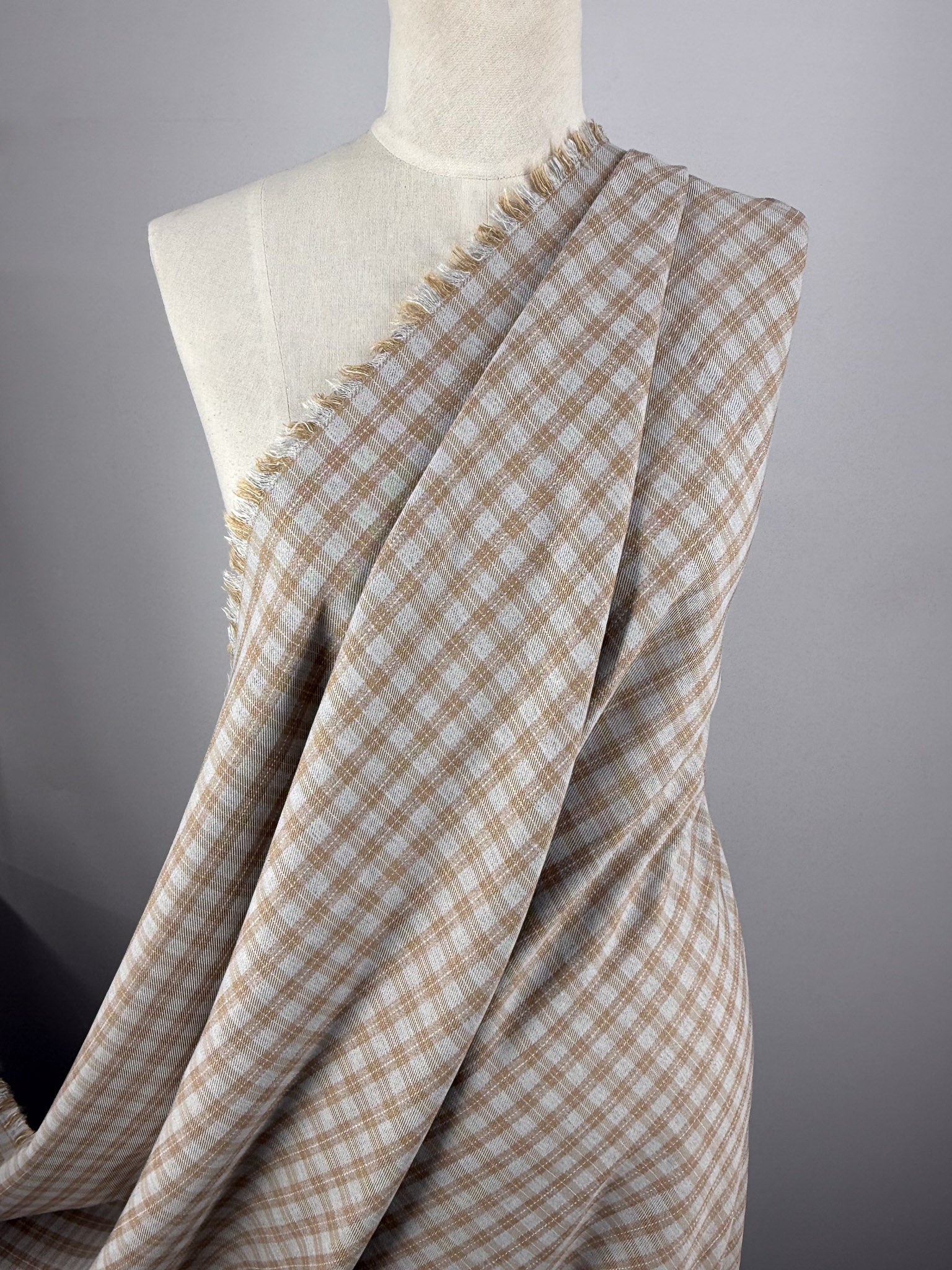 This pure linen has a soft neutral palette with a woven tan and oat check, balanced and versatile.