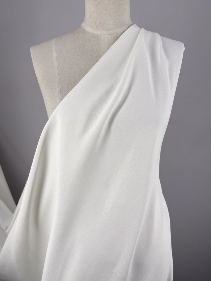 Satin Back Crepe Gentle Machine Wash in cold water. Wash seperately. Do not soak, bleach or wring dry. Dry away from direct sunlight or heat. Do not tumble dry. Cool iron only. Dry-cleanable. |