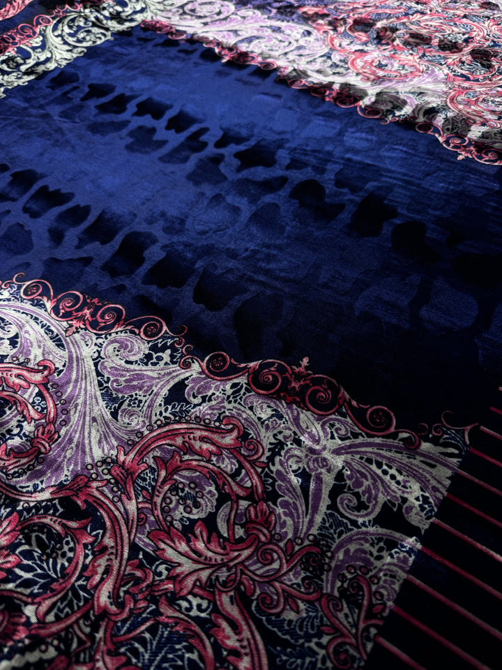 Our Stretch Velour Fabric combines the sumptuous feel of classic velvet with the unmatched flexibility of modern stretch materials, making it an ideal choice for creating garments that require both elegance and mobility. Gorgeous movement, whether you're gliding across a dance floor or simply reaching for a book on the highest shelf. Its rich, deep hues catch the light in a mesmerizing play of texture and color.