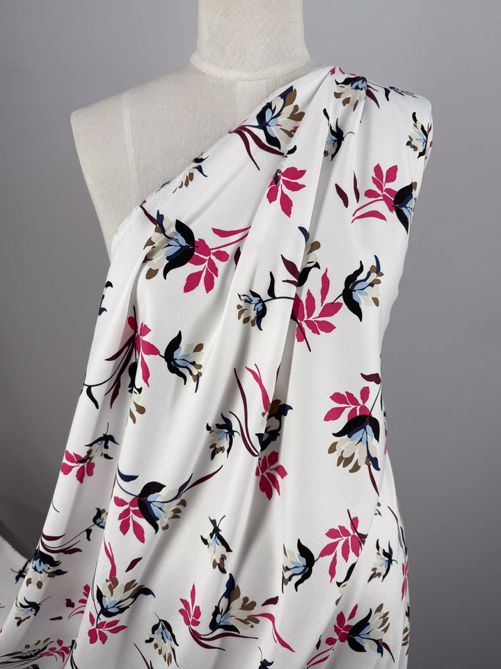 Satin Back Crepe Gentle Machine Wash in cold water. Wash seperately. Do not soak, bleach or wring dry. Dry away from direct sunlight or heat. Do not tumble dry. Cool iron only. Dry-cleanable. |