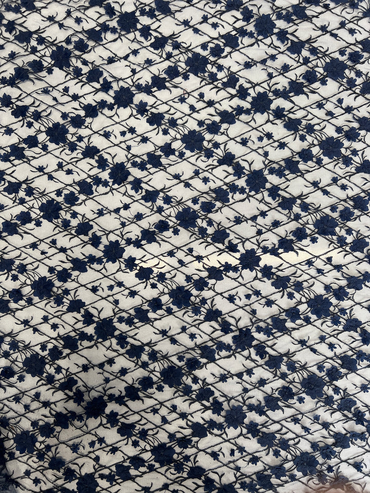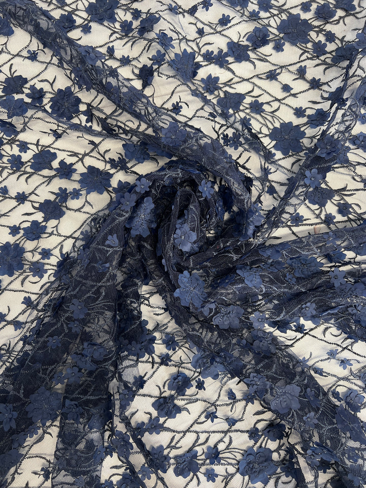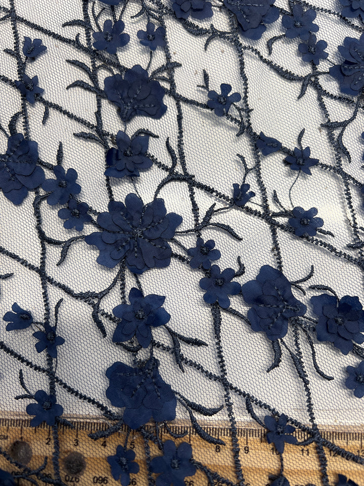 Embroidery on Tulle - 142cm - 3D Navy Bliss