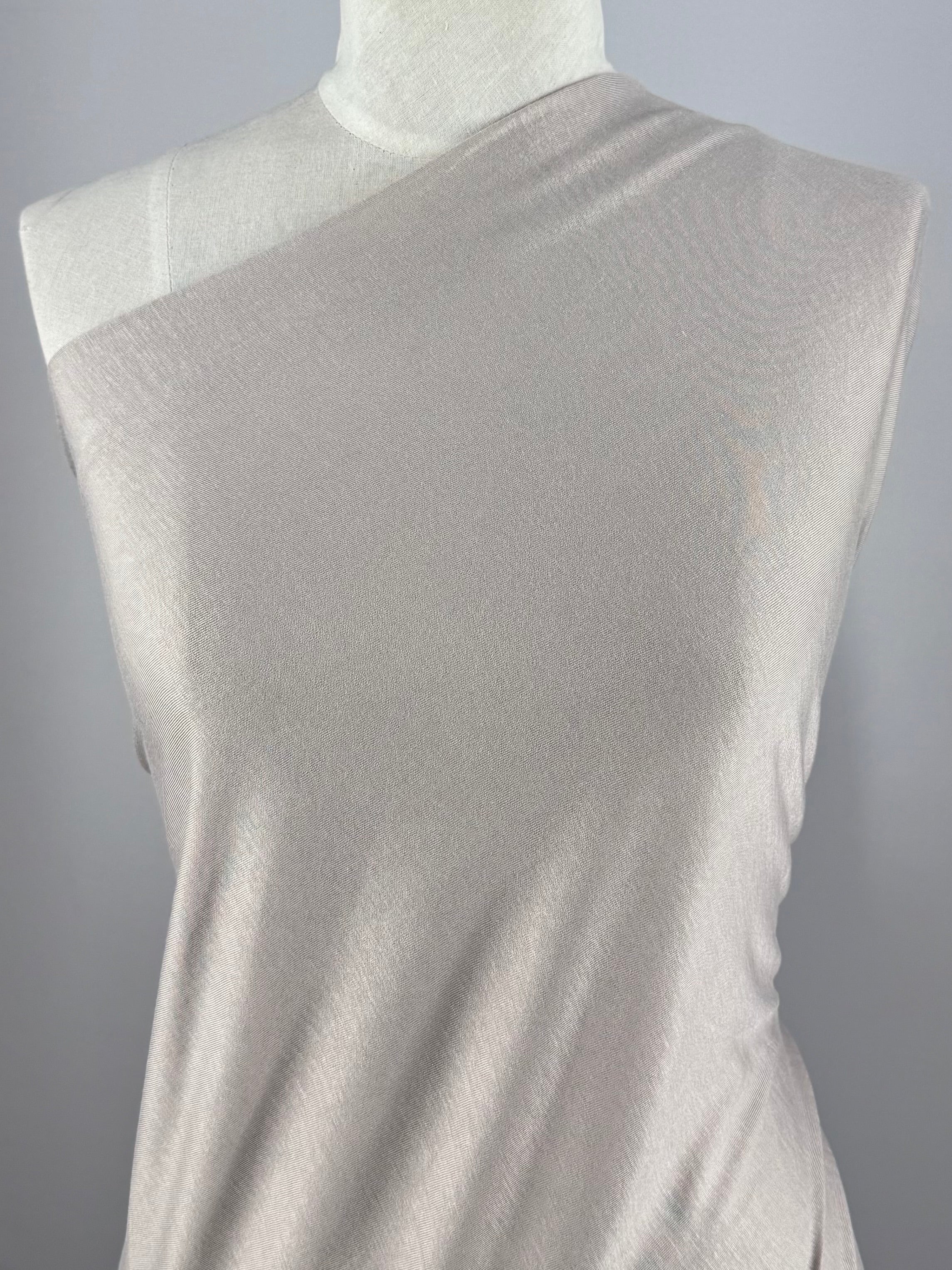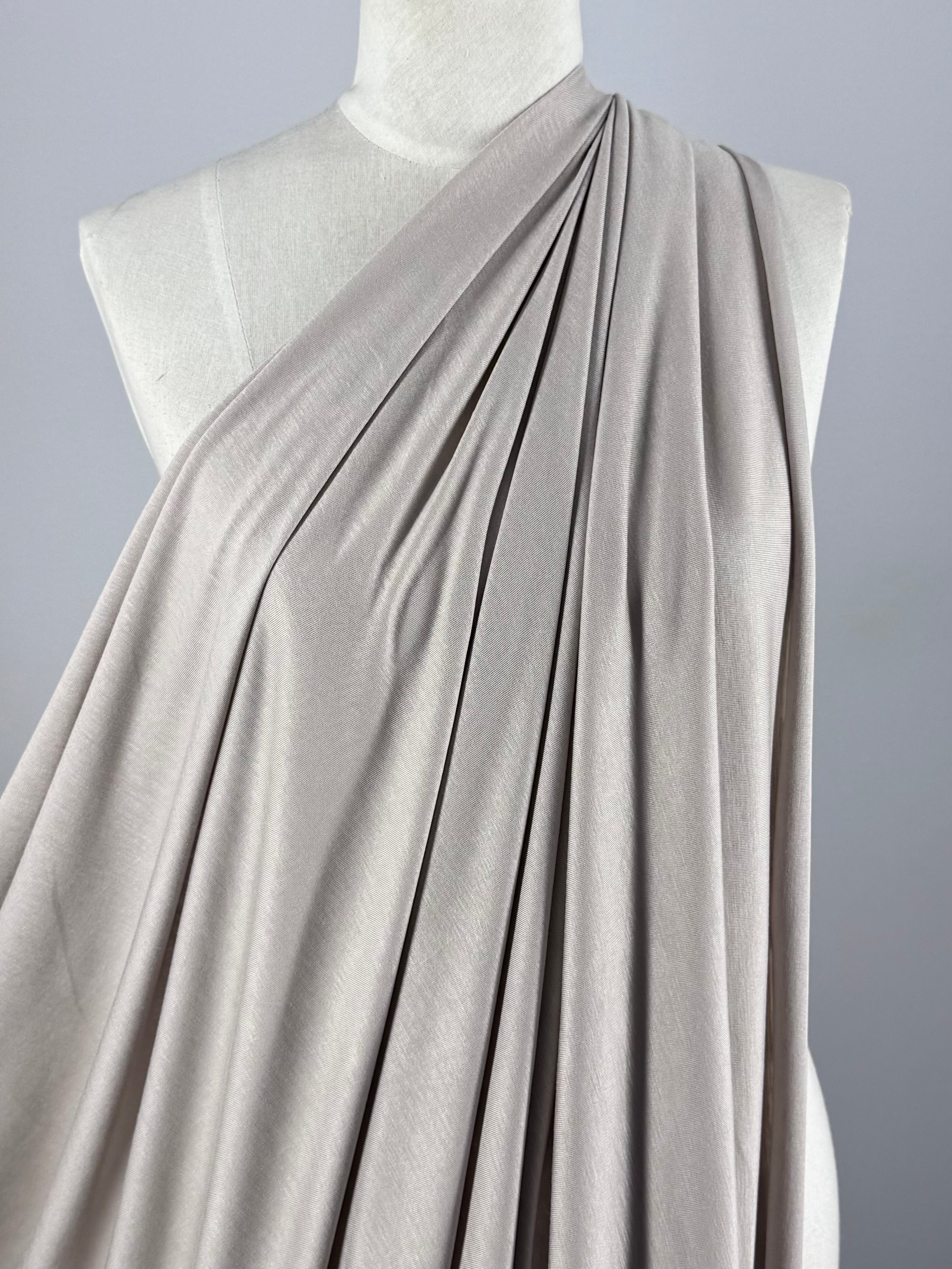 A soft and natural knit fabric. This fabric has a beautiful feel and is comprised of 100% natural cotton. This fabric is perfect for making t-shirts, dresses, skirts, pants, and childrenswear.