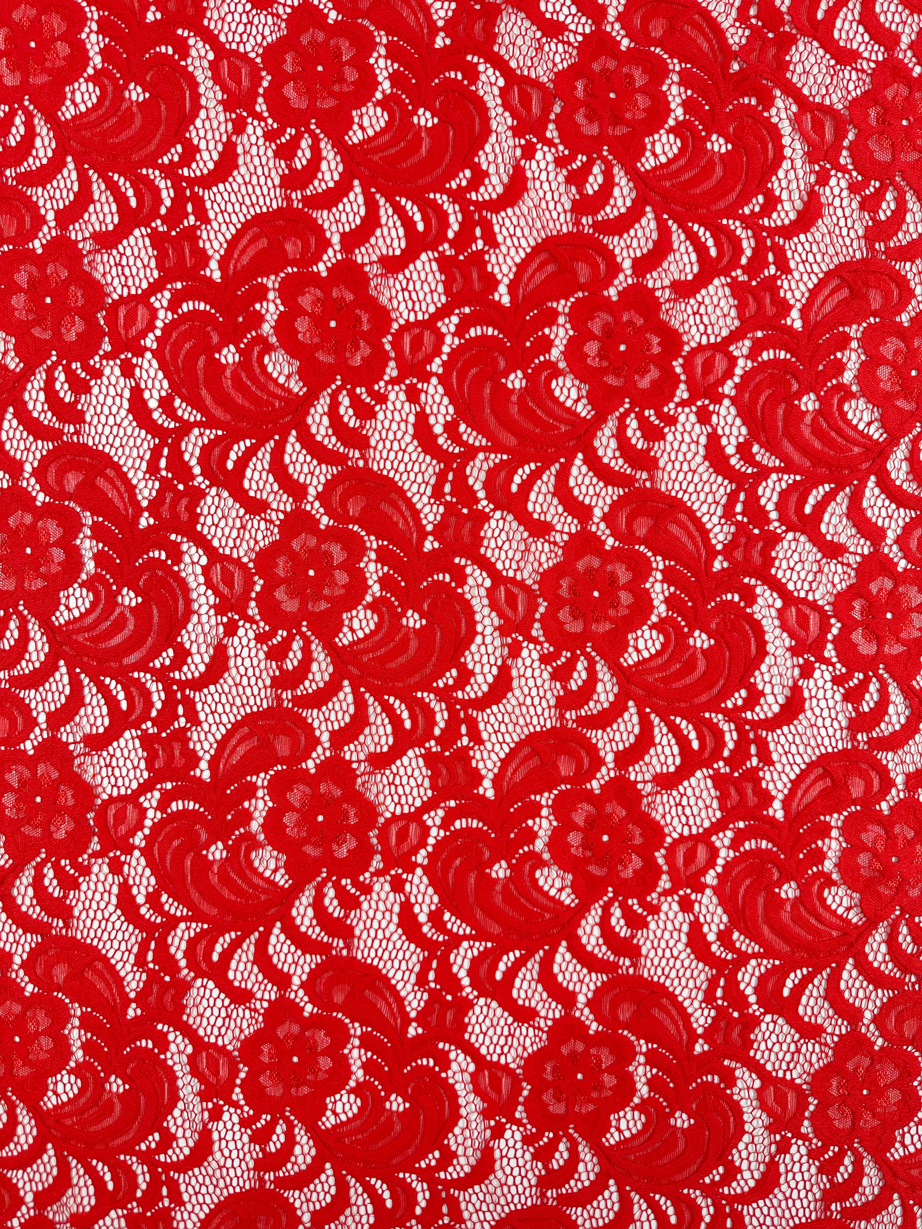 A delicate lace with a gorgeous red colour, stretchy and boasts a beautiful drape.