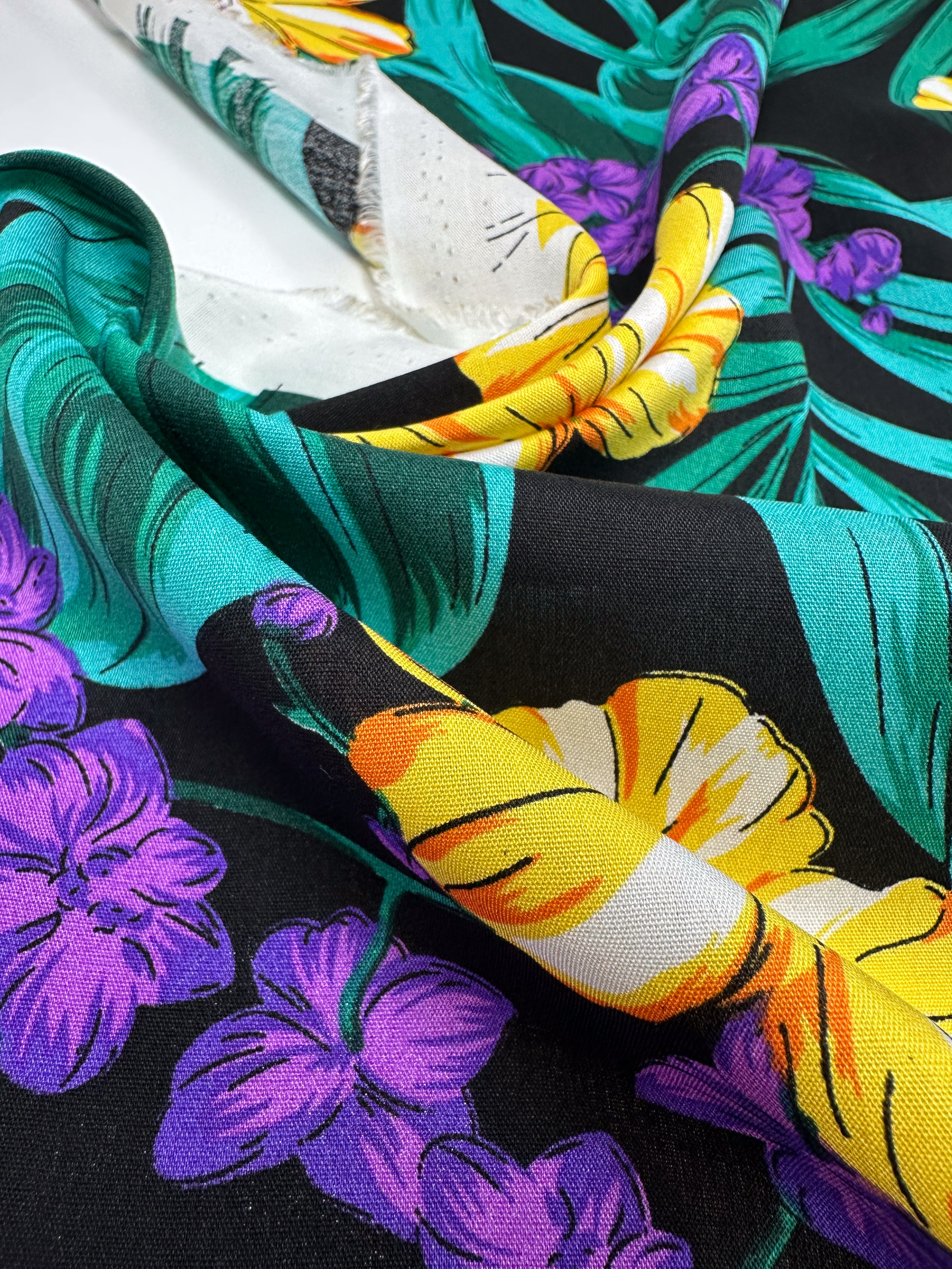 Our Designer Rayon showcases a beautiful and colourful fabric with vibrant prints that can be used for various purposes such as dresses, skirts, blouses, curtains, and more. Overall, rayon fabric offers both comfort and style, making it a versatile choice for any project.