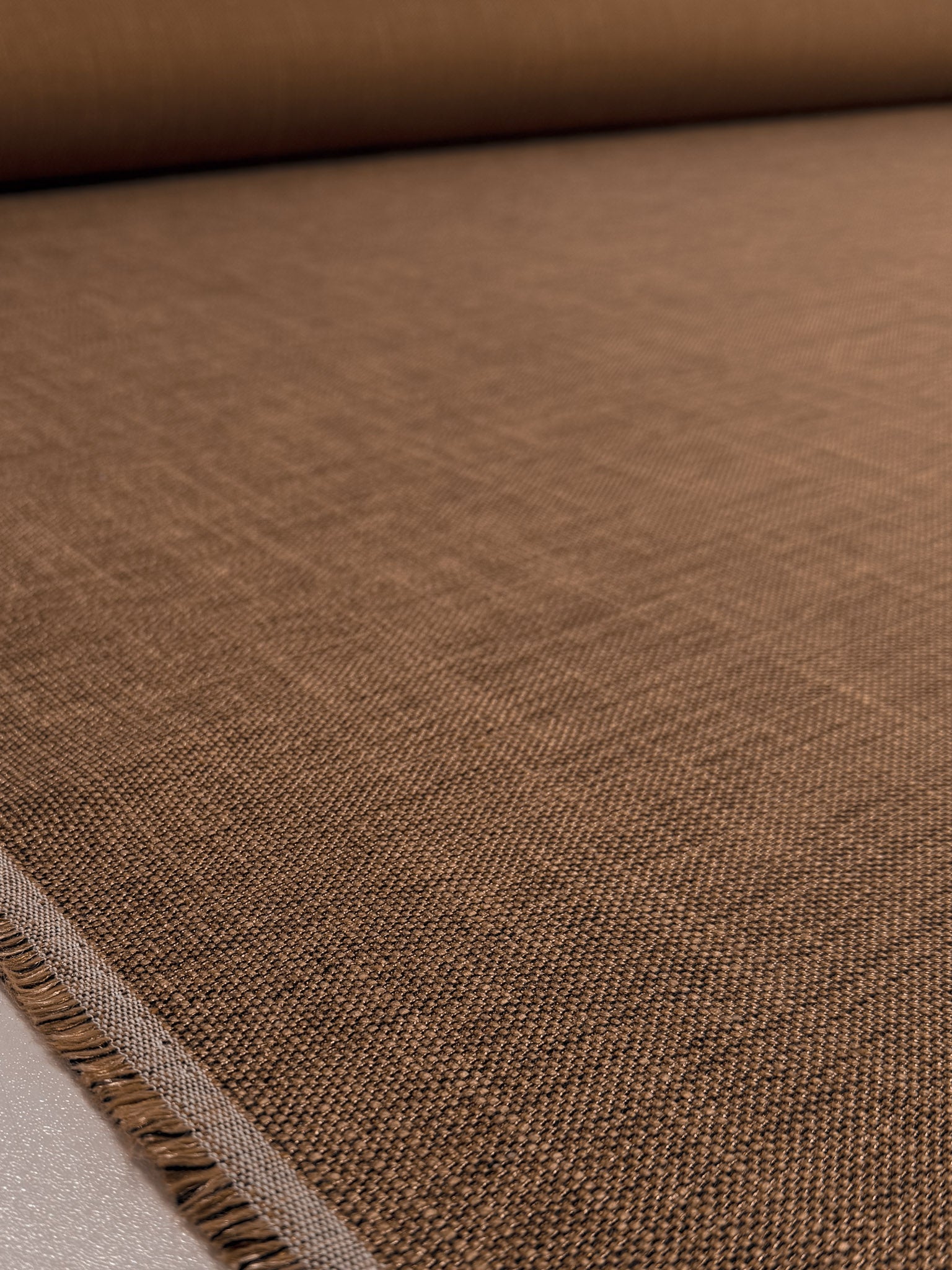 Textured Flat Weave Upholstery Fabric in Camel Brown.