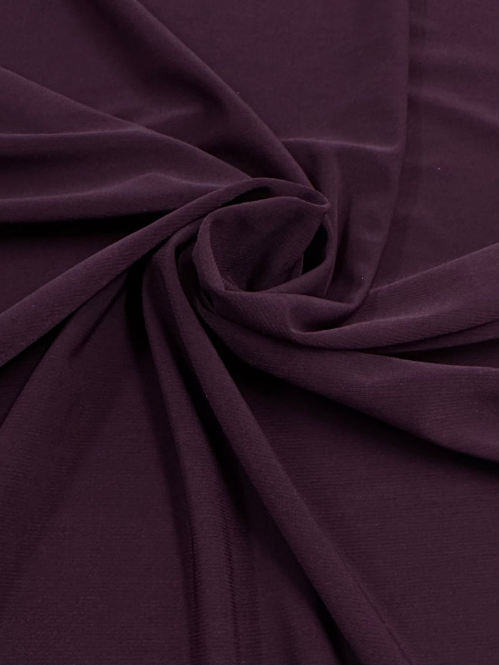 A beautiful plain, plum-coloured interlock twist yarn fabric. This opaque fabric has been knit to have great elasticity and a soft touch. This medium weight fabric is the perfect weight for tops, dresses skirts and loose pants.
