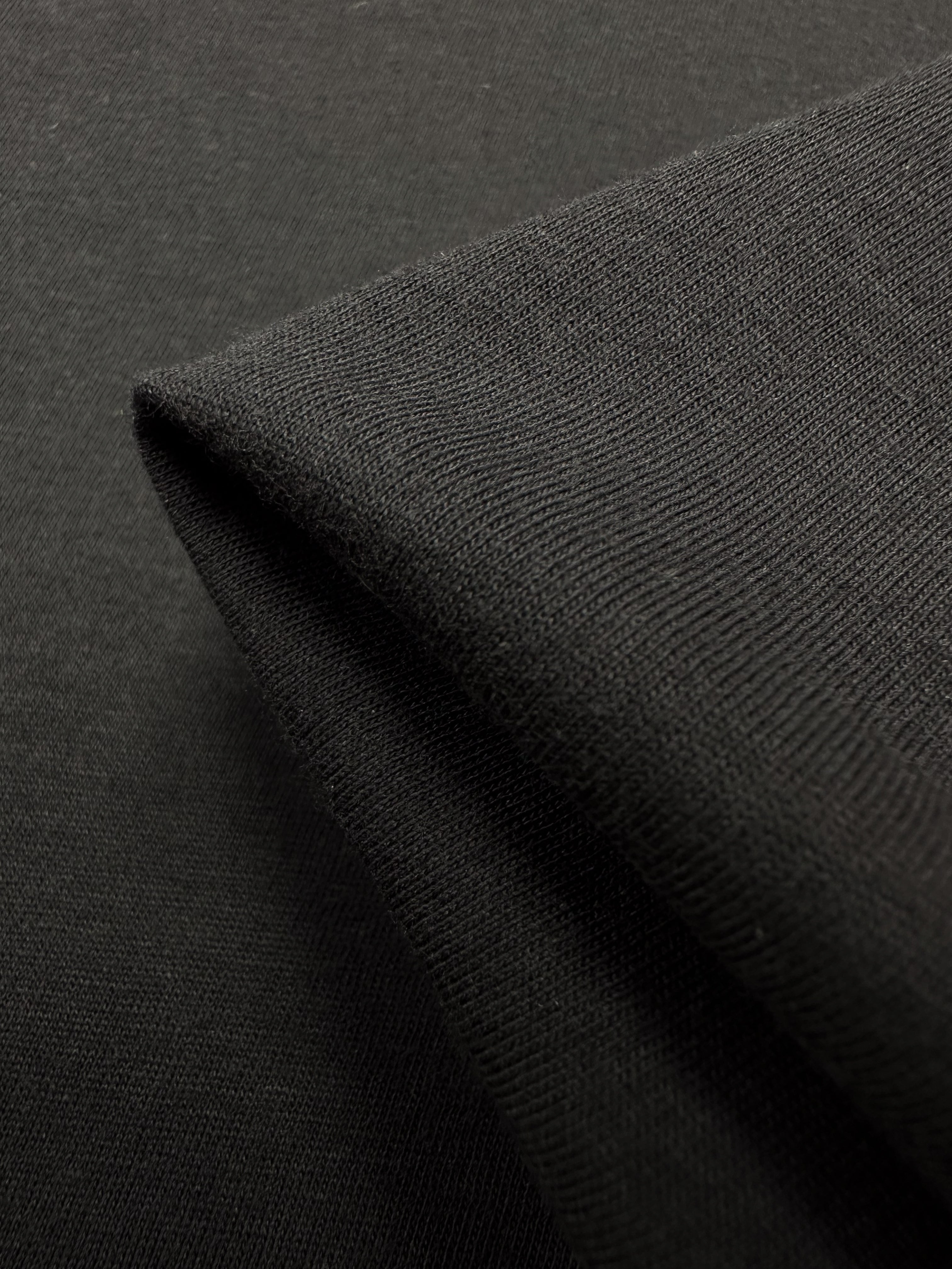 A lighter weight cotton Lycra with a good amount of stretch. Soft to the touch, drapes well.