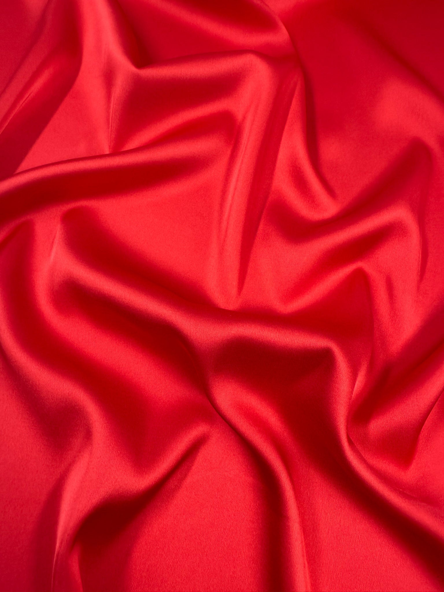 A matte, luxury fabric often used for nightgowns. Satin refers to the weave, not the textile, and most fabrics characterised as satin have a soft, shiny yet matte finish. No spandex however this satin has some give.