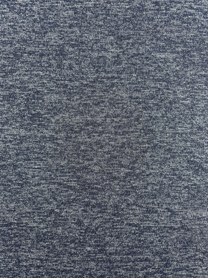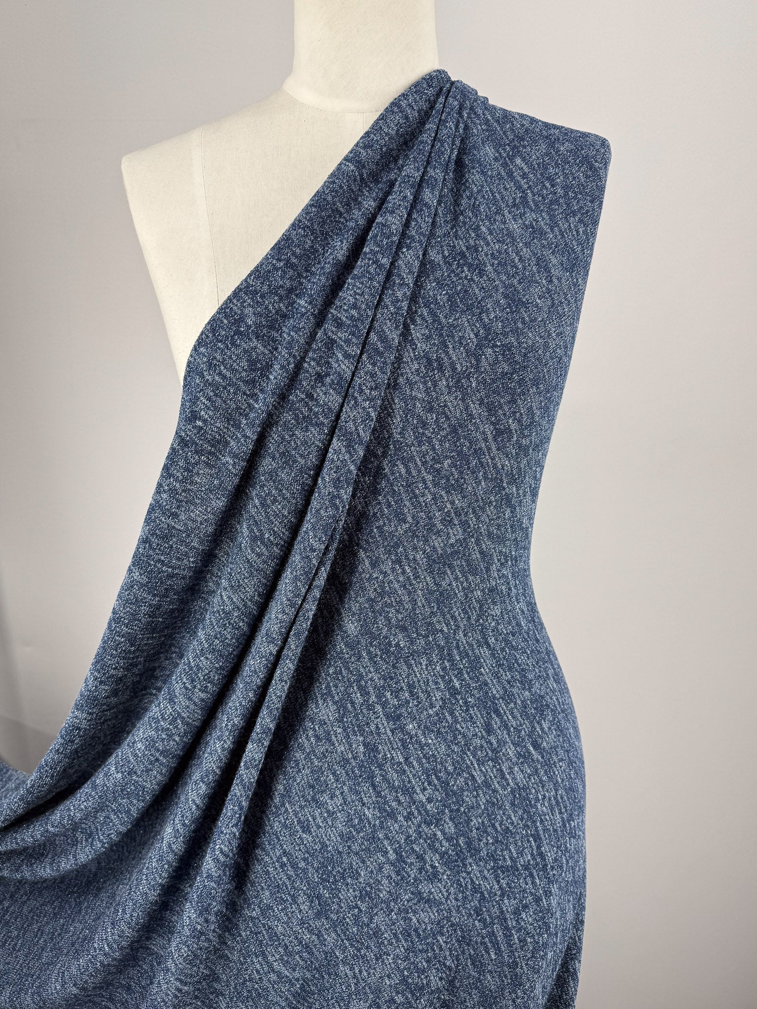A soft heathered blue lurex knit with a smooth, fluid drape.