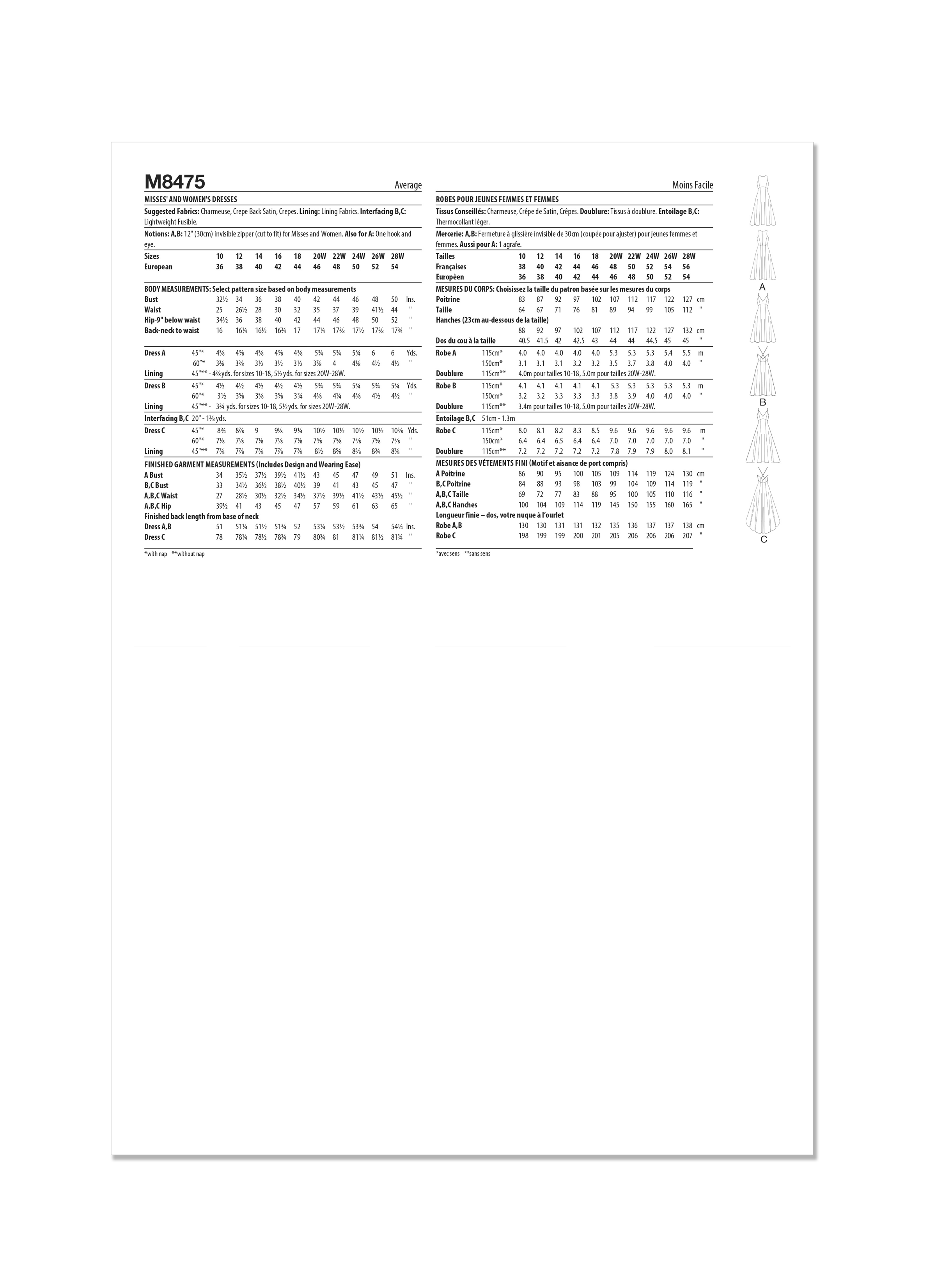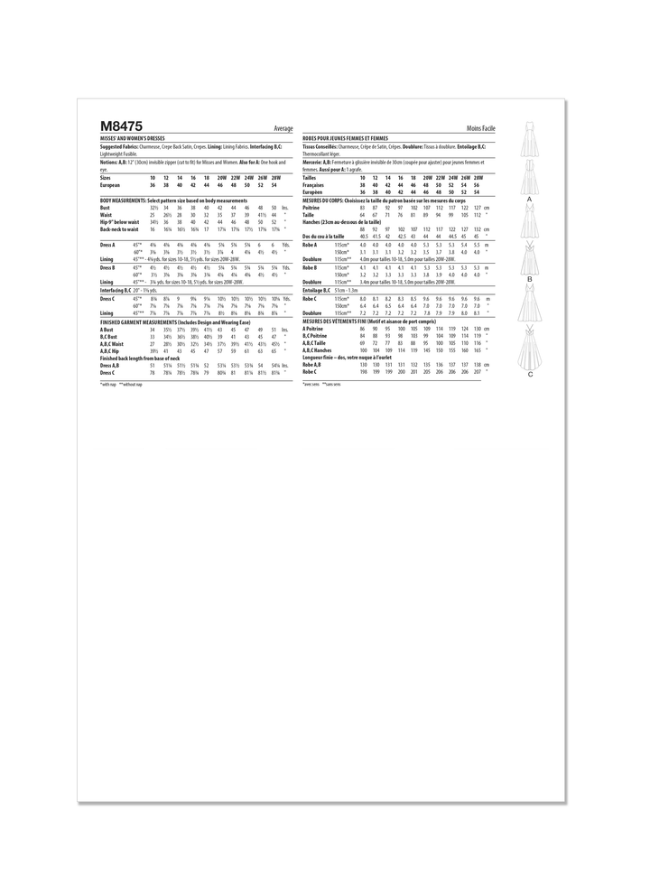 Turn heads and make a statement with McCall’s Sewing Pattern M8475, designed for stunning evening dresses in Misses’ and Women’s sizes 10-28W. Featuring elegant curved empire and princess seams, these dresses offer a flattering fit with timeless charm. Choose from strap or racerback styles, an invisible zipper closure, and options like the breathtaking floor-length View C dress with a dramatic train. Perfect for proms, galas, or formal occasions, this pattern ensures you’ll craft a gown that’s as unique as you are!