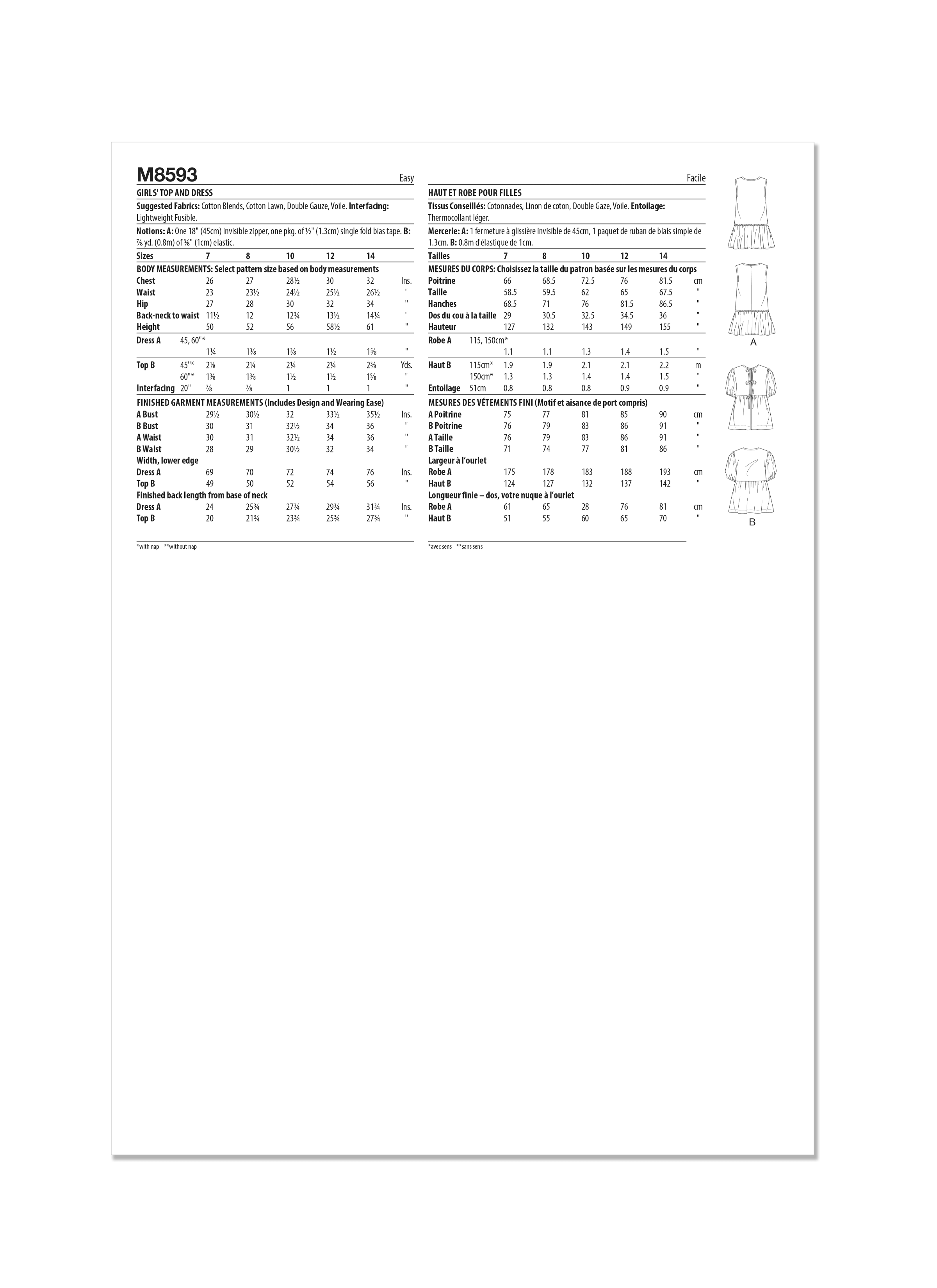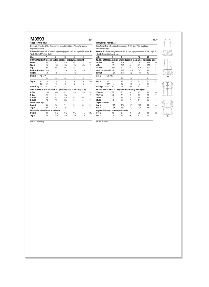 Pattern - NEW LOOK - M8593 - Girls’ Dress and Top