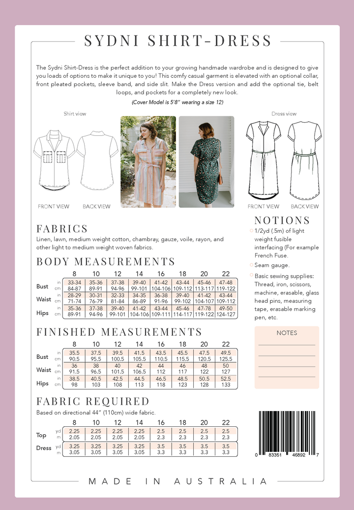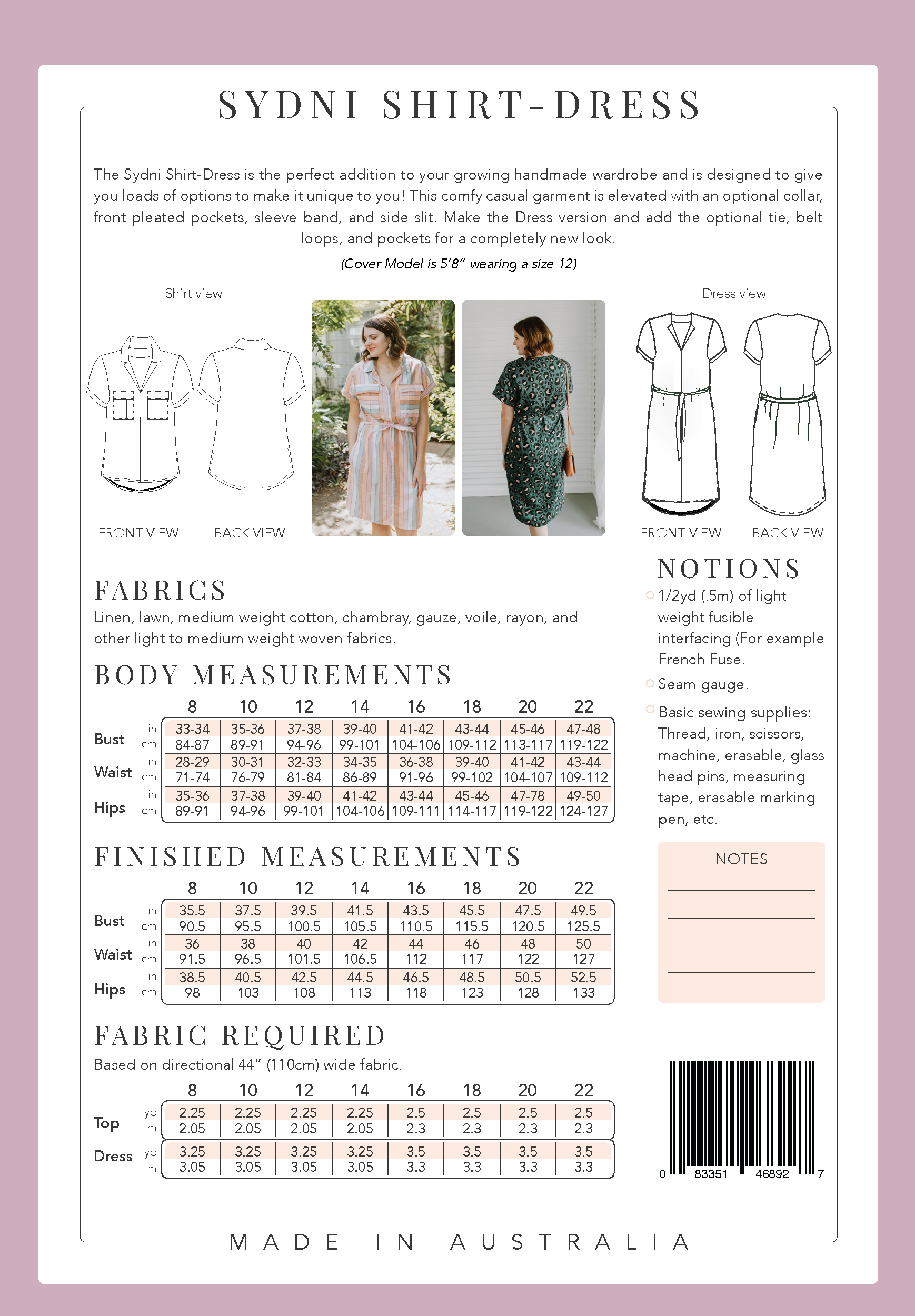 The Sydni Shirt Dress is the perfect addition to your growing handmade wardrobe. This comfy casual garment is elevated with an optional collar, front pleated pockets, sleeve band, and side fit. The perfect pattern for you to create a dress that can be taken from day to night!