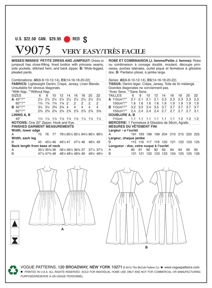 Pattern - Vogue - V9075 - Misses’/Misses’ Petite Dress and Jumpsuit