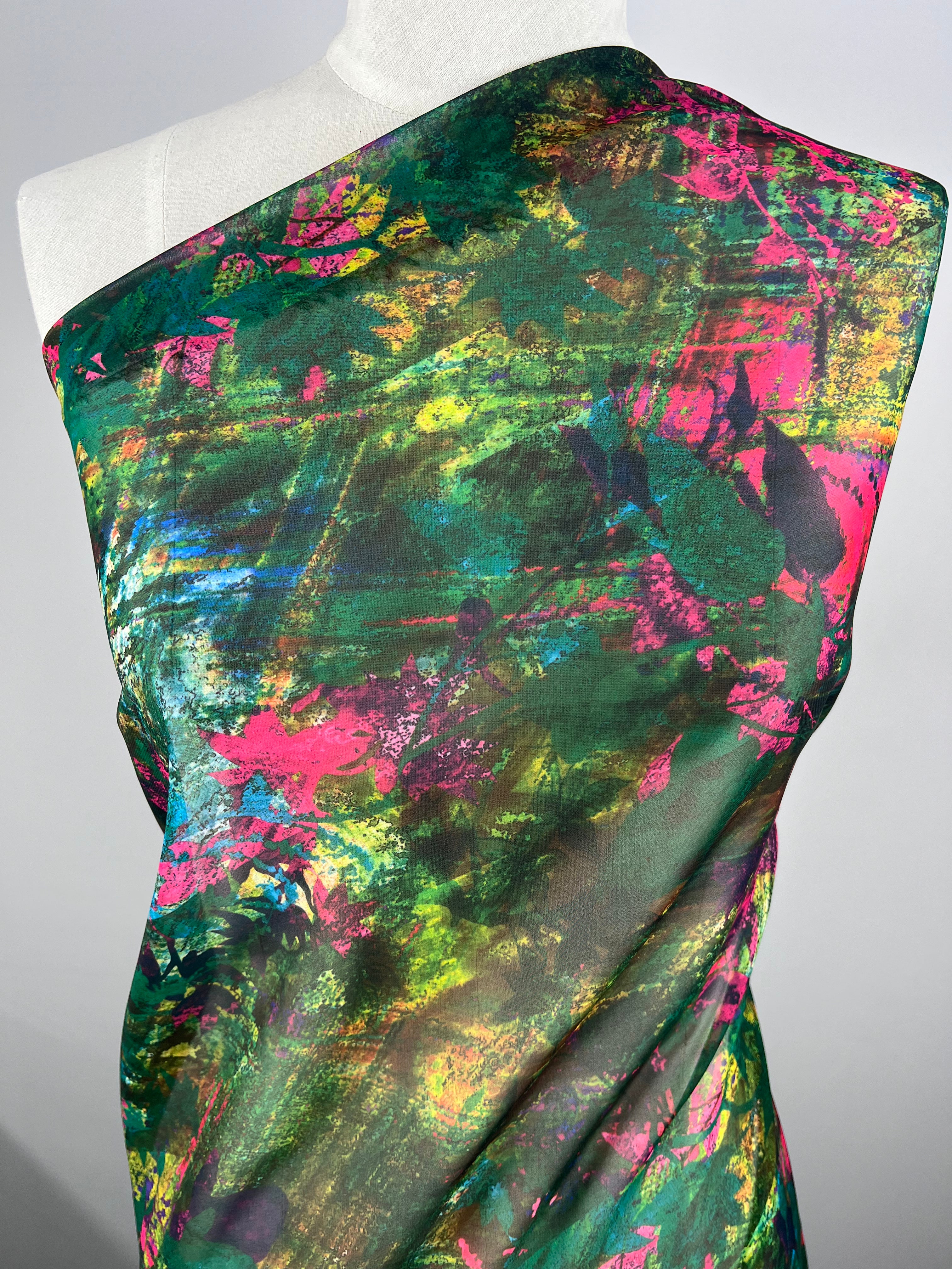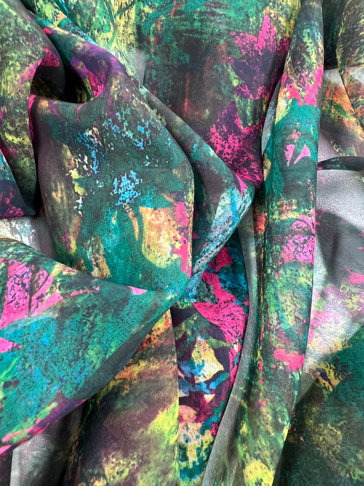 This Polyester Chiffon fabric is one of our bestsellers at Super Cheap Fabrics. Our lightweight chiffon material is semi-sheer and delicate. This fabric is perfect for an array of sewing projects: dresses, line sarees, wraps, overlays, blouses, kaftans, kimono-style outerwear, and scarves.