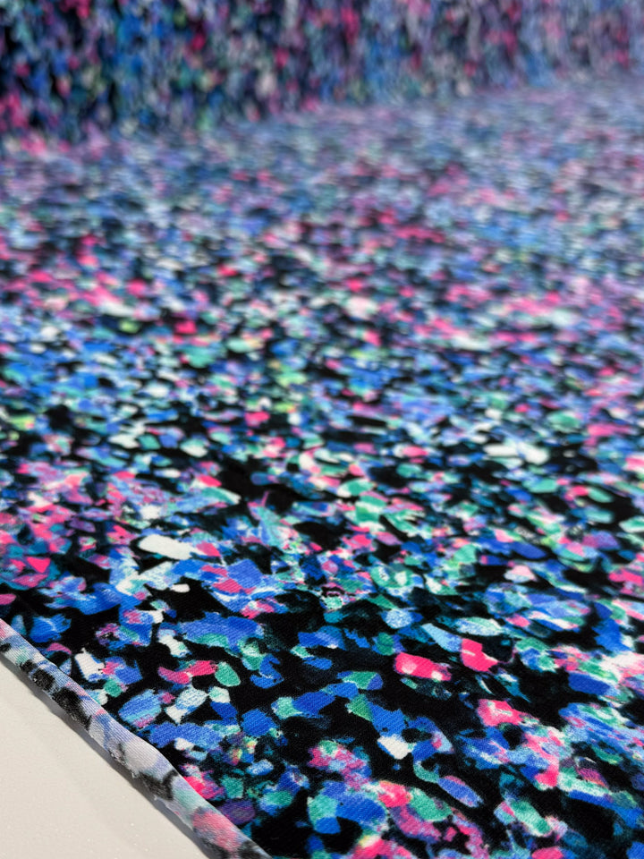 Our Printed Lycra is a Polyester/Spandex fabric that has a two-way stretch and comes in a variety of beautiful prints! Printed Lycra is a medium-weight fabric, has good durability and stretch, and washes well. Our Lycras are perfect for making tops, dresses, skirts, pants, accessories, and even childrenswear.