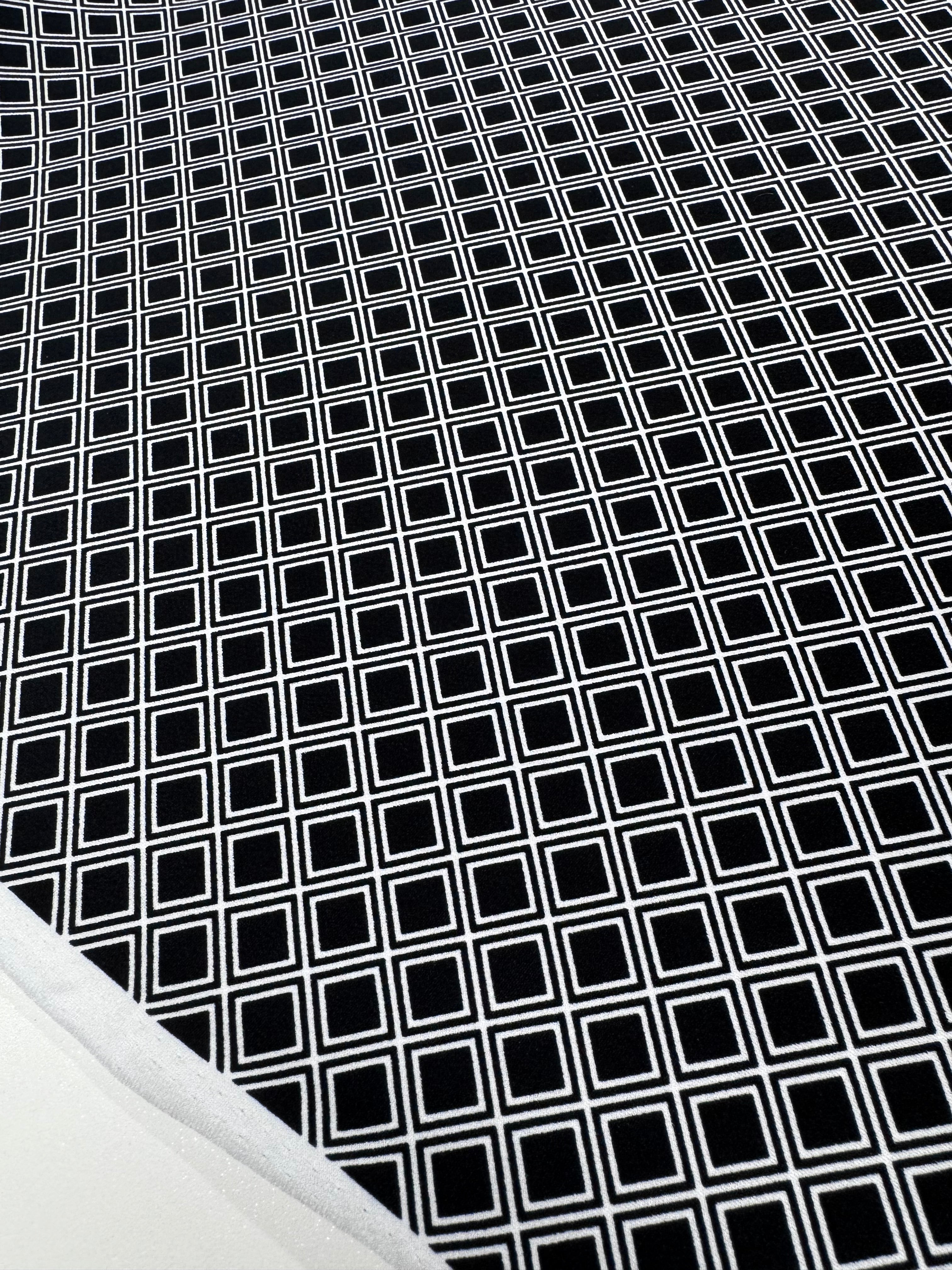 Our Printed Lycra is a Polyester/Spandex fabric that has a two-way stretch and comes in a variety of beautiful prints! Printed Lycra is a medium-weight fabric, has good durability and stretch, and washes well. Our Lycras are perfect for making tops, dresses, skirts, pants, accessories, and even childrenswear. An intricate multi-coloured paisley with teal, orange, pink, and green accents.