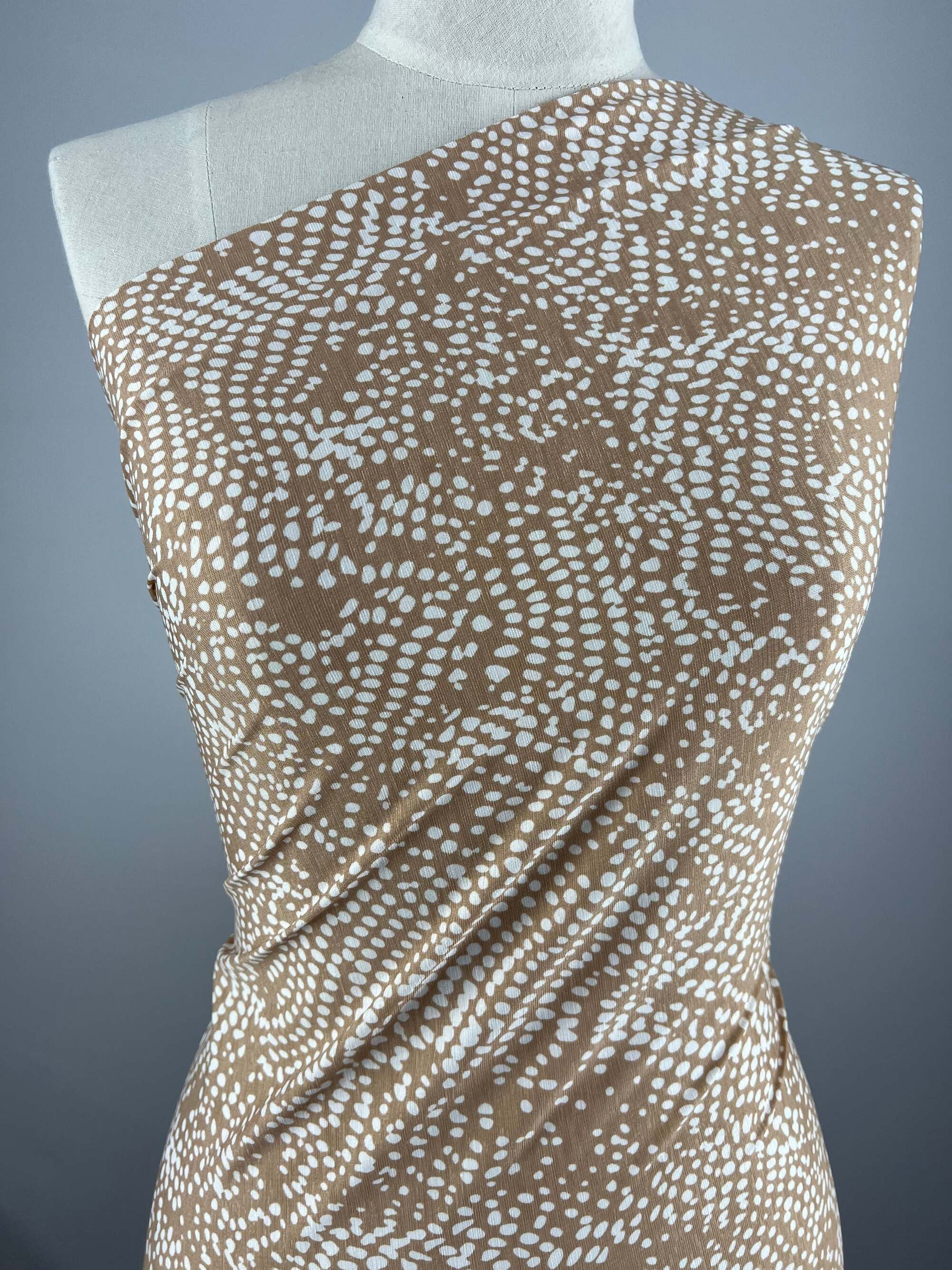 Our Printed Lycra is a Polyester/Spandex fabric that has a two-way stretch and comes in a variety of beautiful prints! Printed Lycra is a medium-weight fabric, has good durability and stretch, and washes well. Our Lycras are perfect for making tops, dresses, skirts, pants, accessories, and even childrenswear.