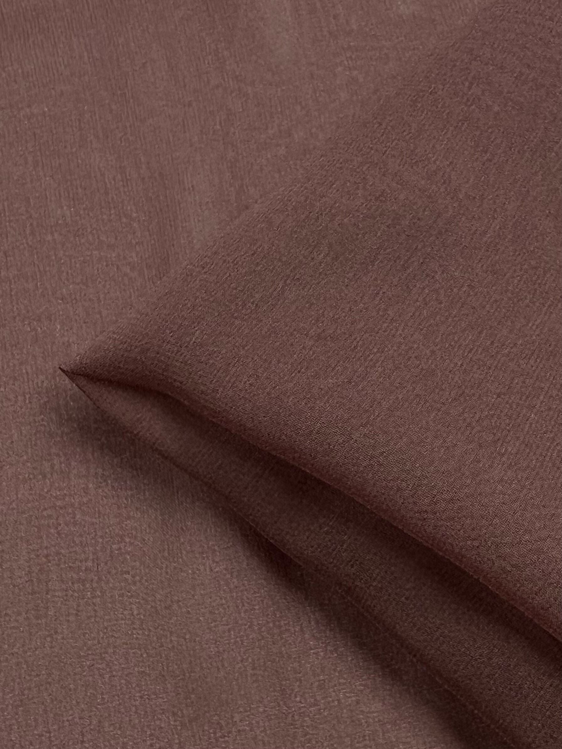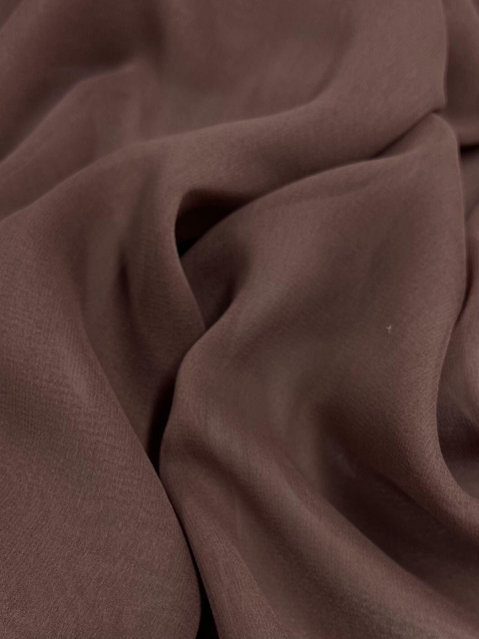 A close-up image of the Silk Georgette - Shroon - 135cm from Super Cheap Fabrics, showing the brown fabric folded neatly with a smooth, fine texture. This lightweight fabric is perfect for spring and summer outfits, appearing plain and uniform in color.