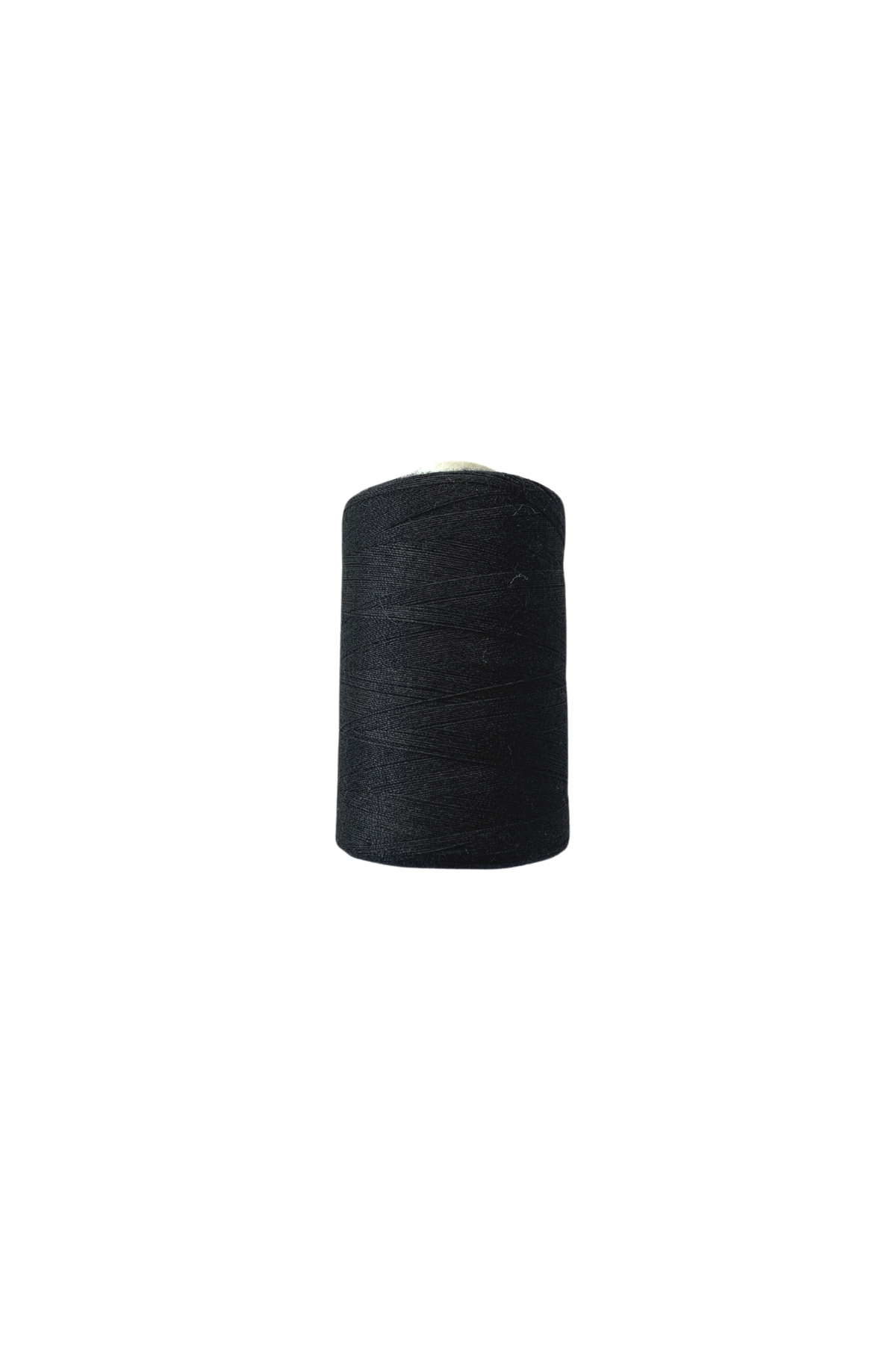 A small spool of Super Cheap Fabrics' Thread - Black stands vertically against a plain white background. This spun polyester thread, tightly wound around the spool, measures an impressive 1000 meters.