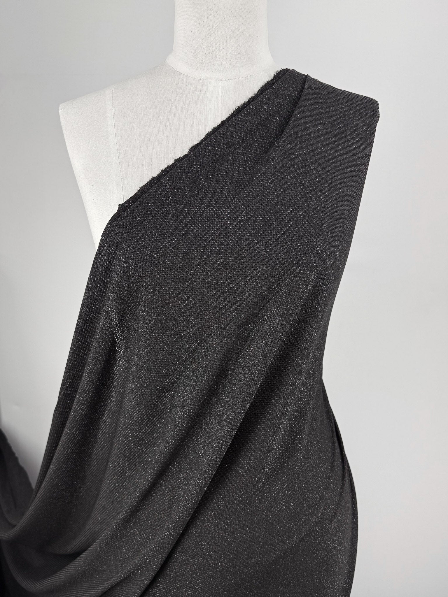 A rich black viscose lurex knit with a soft shimmer and supple drape.