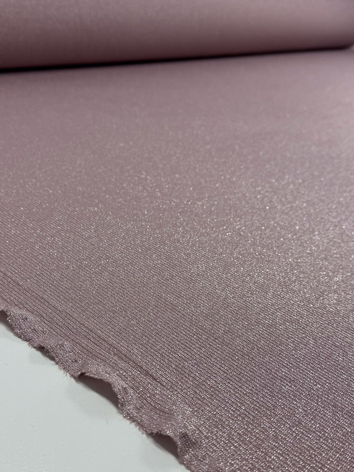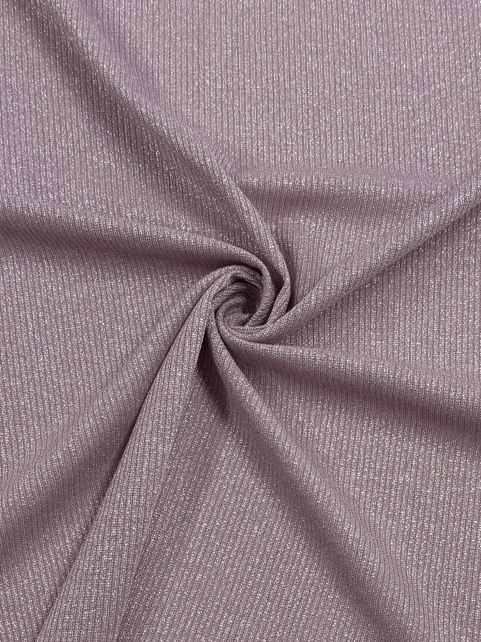 A rich viscose lurex knit with a subtle shimmer and soft, fluid drape. Lightweight and comfortable, this ribbed Knit is ideal for elegant tops, dresses, and relaxed eveningwear.